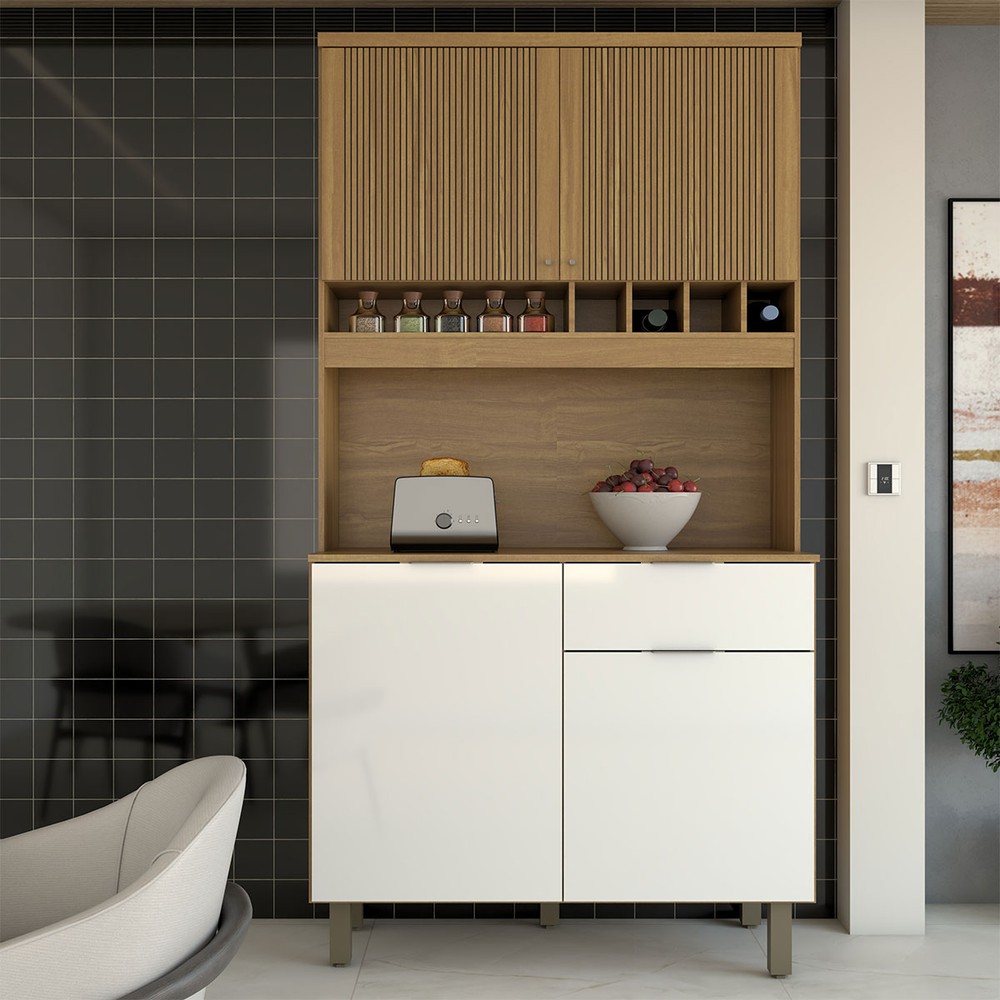 O(a) Cozinha Compacta Luz 1 Gaveta 4 Portas 100% Mdf Amêndoa/Branco - Panorama Móveis é produzido em 100% MDF na escala de brilho Semi-Brilho, e possui um grau de dificuldade de montagem: Difícil.