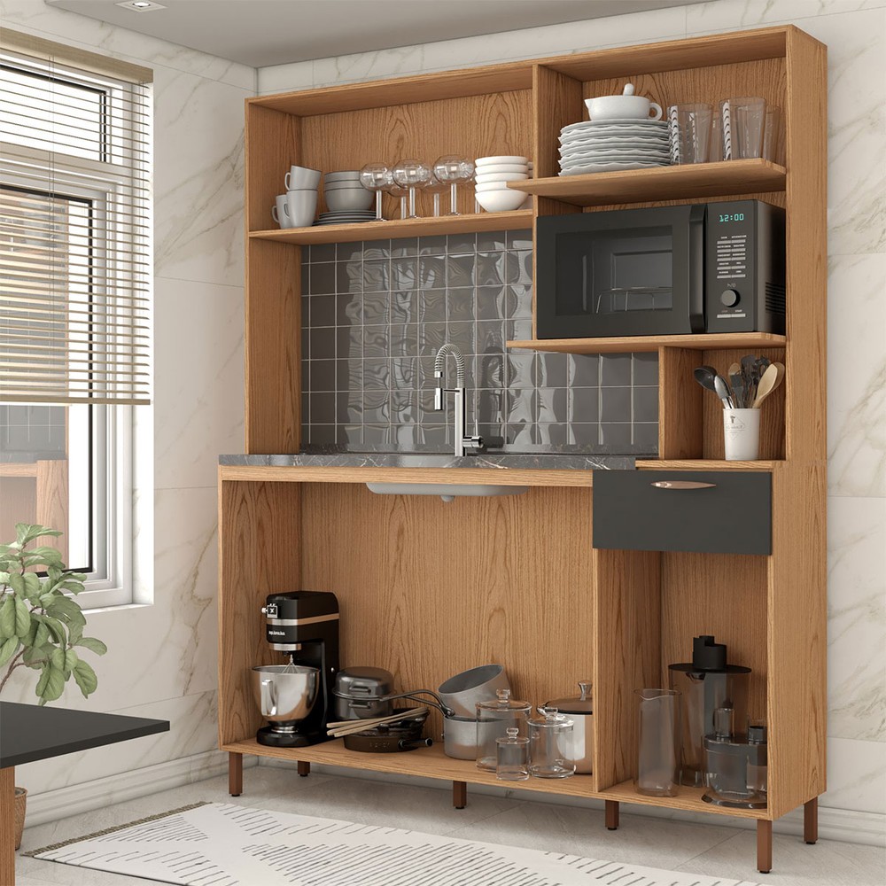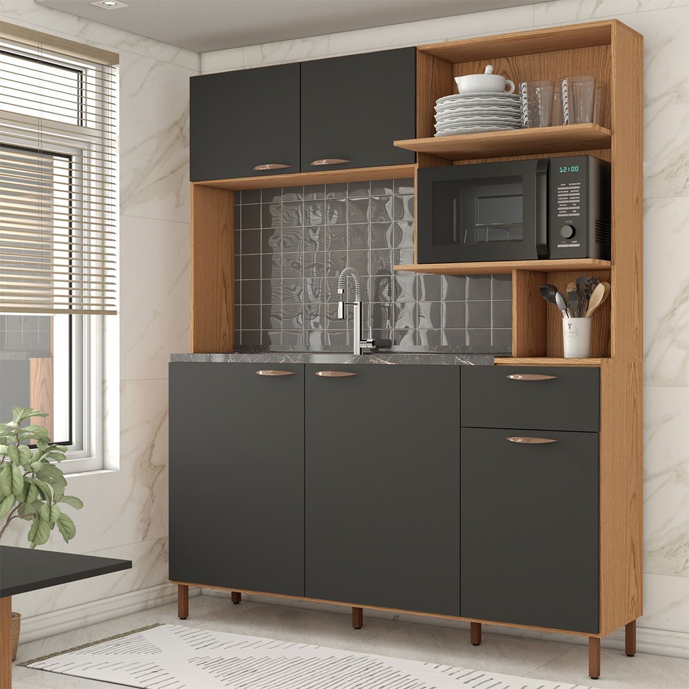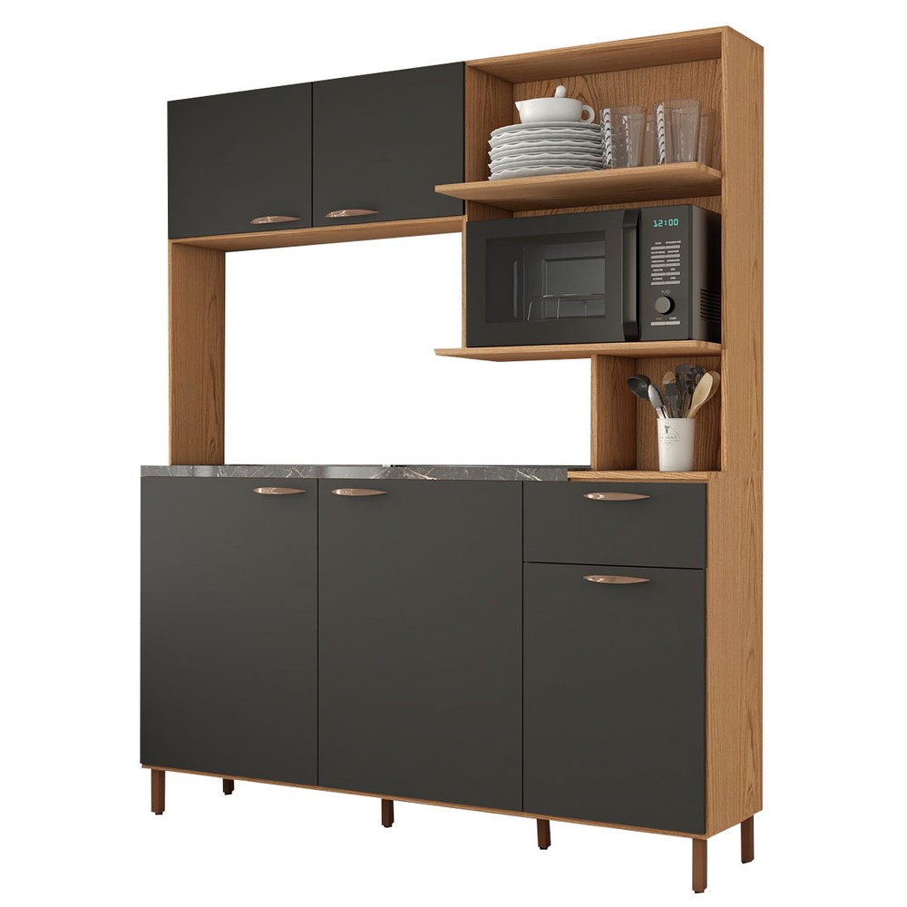 Cozinha Compacta Malu 5 Portas 1 Gavetas Freijó/Grafite Belga - Panorama Móveis