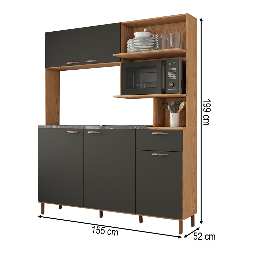 O(a) Cozinha Compacta Malu 5 Portas 1 Gavetas Freijó/Grafite Belga - Panorama Móveis é produzido em MDP na escala de brilho Fosco, e possui um grau de dificuldade de montagem: Médio.