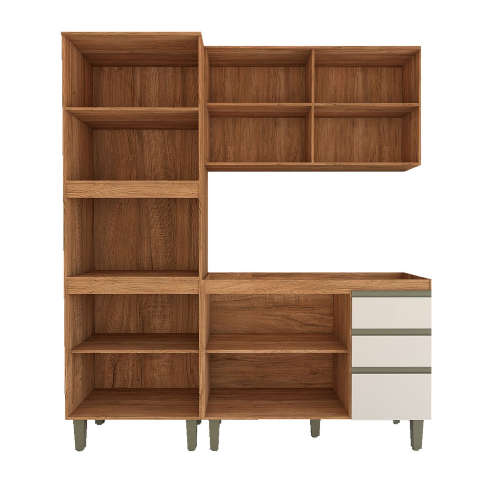 O(a) Cozinha Compacta Modulada 7 Portas 3 Gavetas com Vidro Freijó/Off White - Panorama Móveis é produzido em MDP na escala de brilho Fosco, e possui um grau de dificuldade de montagem: Médio.