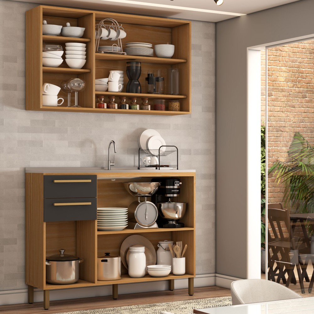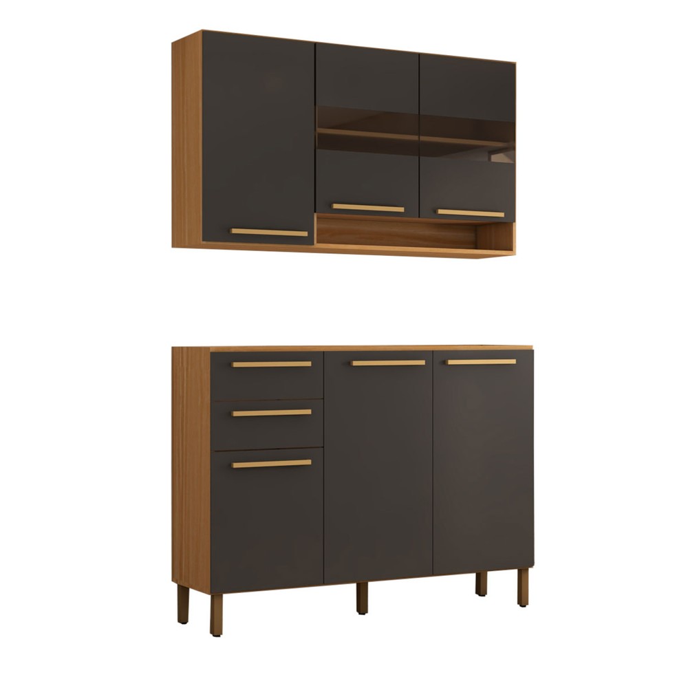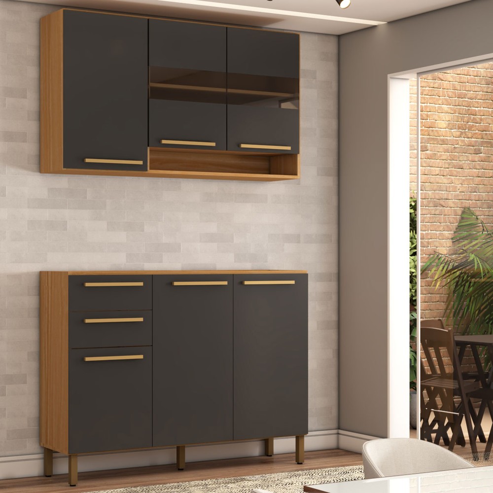 O(a) Cozinha Compacta Notte 6 Portas 2 Gavetas 100% Mdf com Vidro Amêndoa/Chumbo - Panorama Móveis é produzido em 100% MDF na escala de brilho Semi-Brilho, e possui um grau de dificuldade de montagem: Médio.