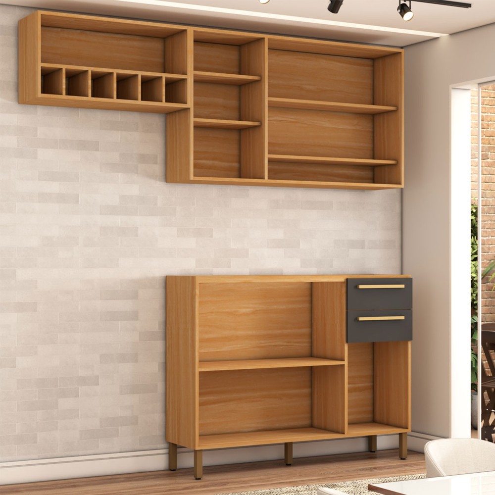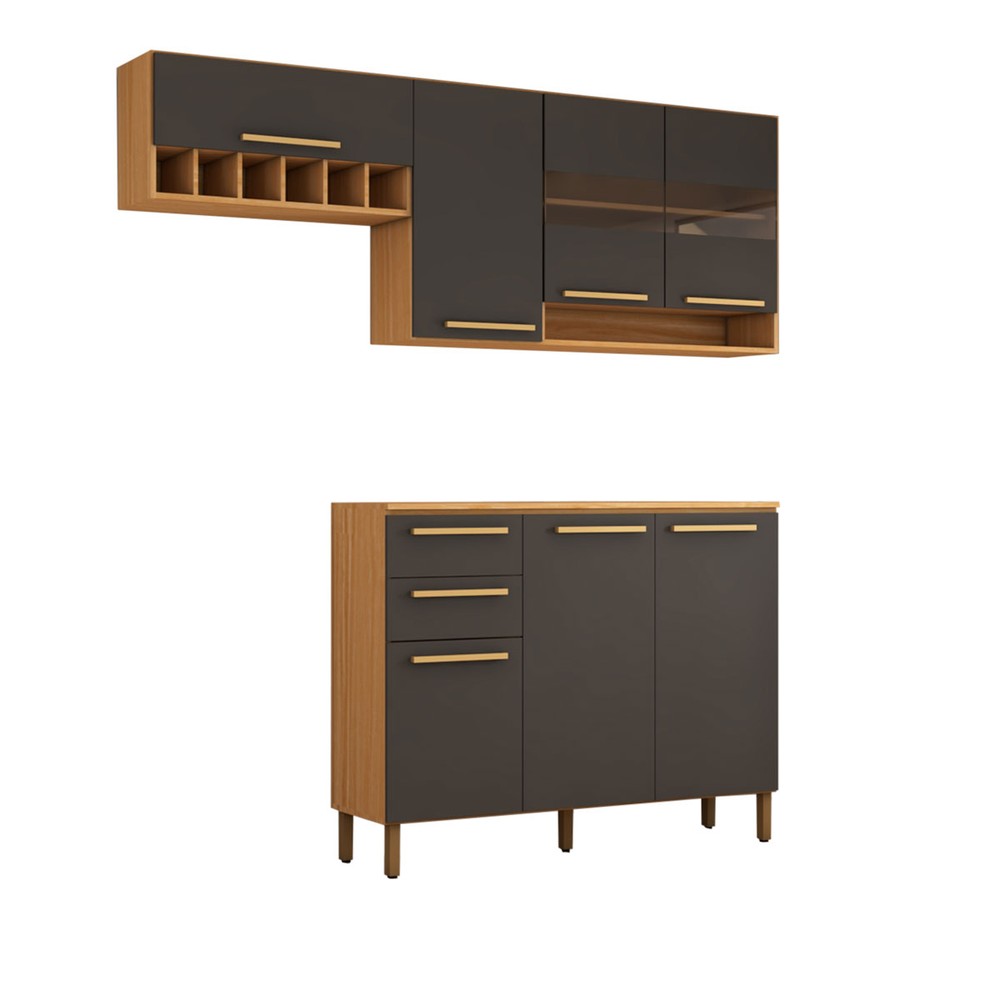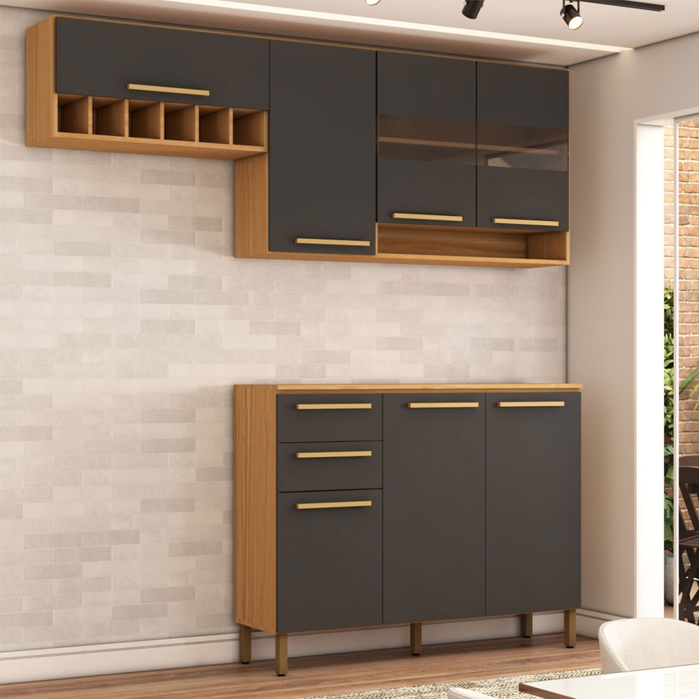 O(a) Cozinha Compacta Nottes 7 Portas 2 Gavetas 100% Mdf com Vidro Amêndoa/Chumbo - Panorama Móveis é produzido em 100% MDF na escala de brilho Semi-Brilho, e possui um grau de dificuldade de montagem: Médio.