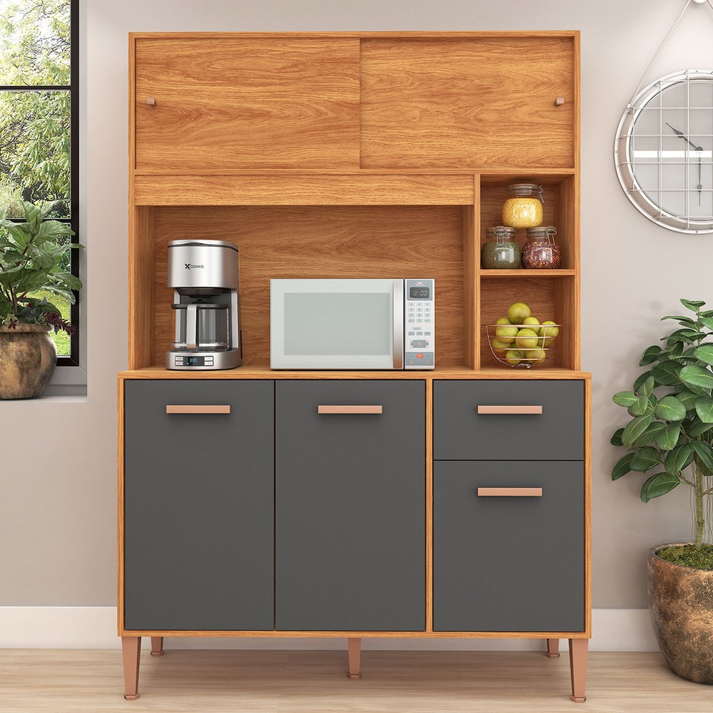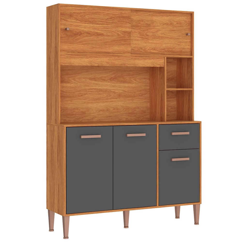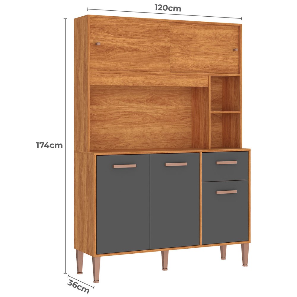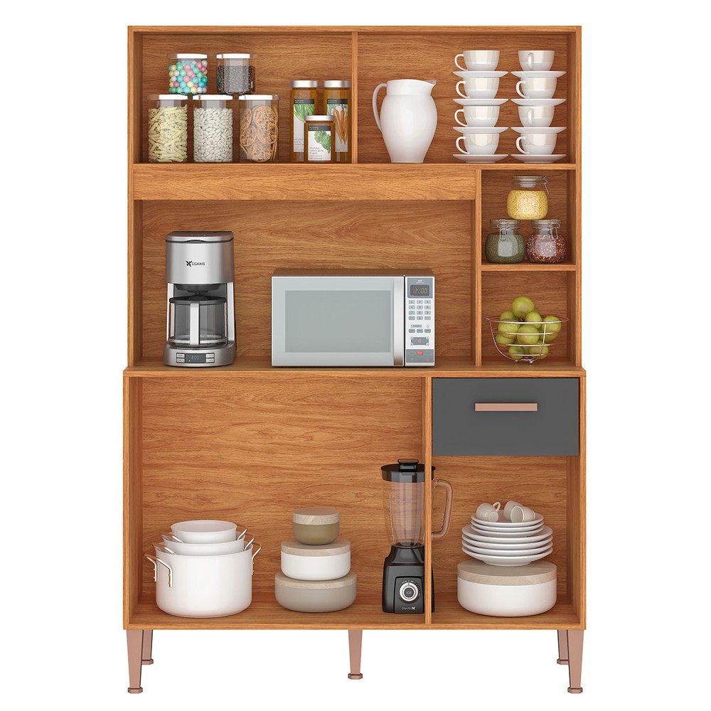 Cozinha Compacta Pérola 5 Portas 1 Gaveta Cinamomo/Grafite - Fellicci