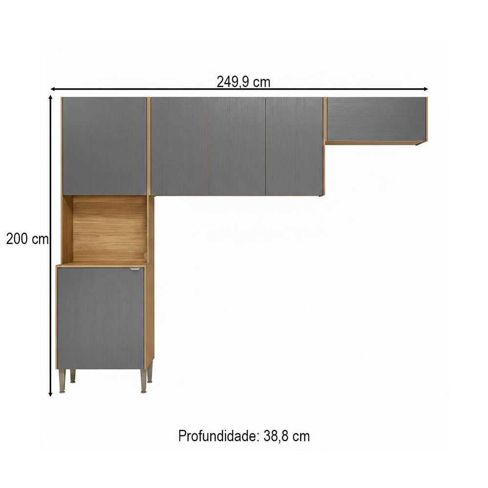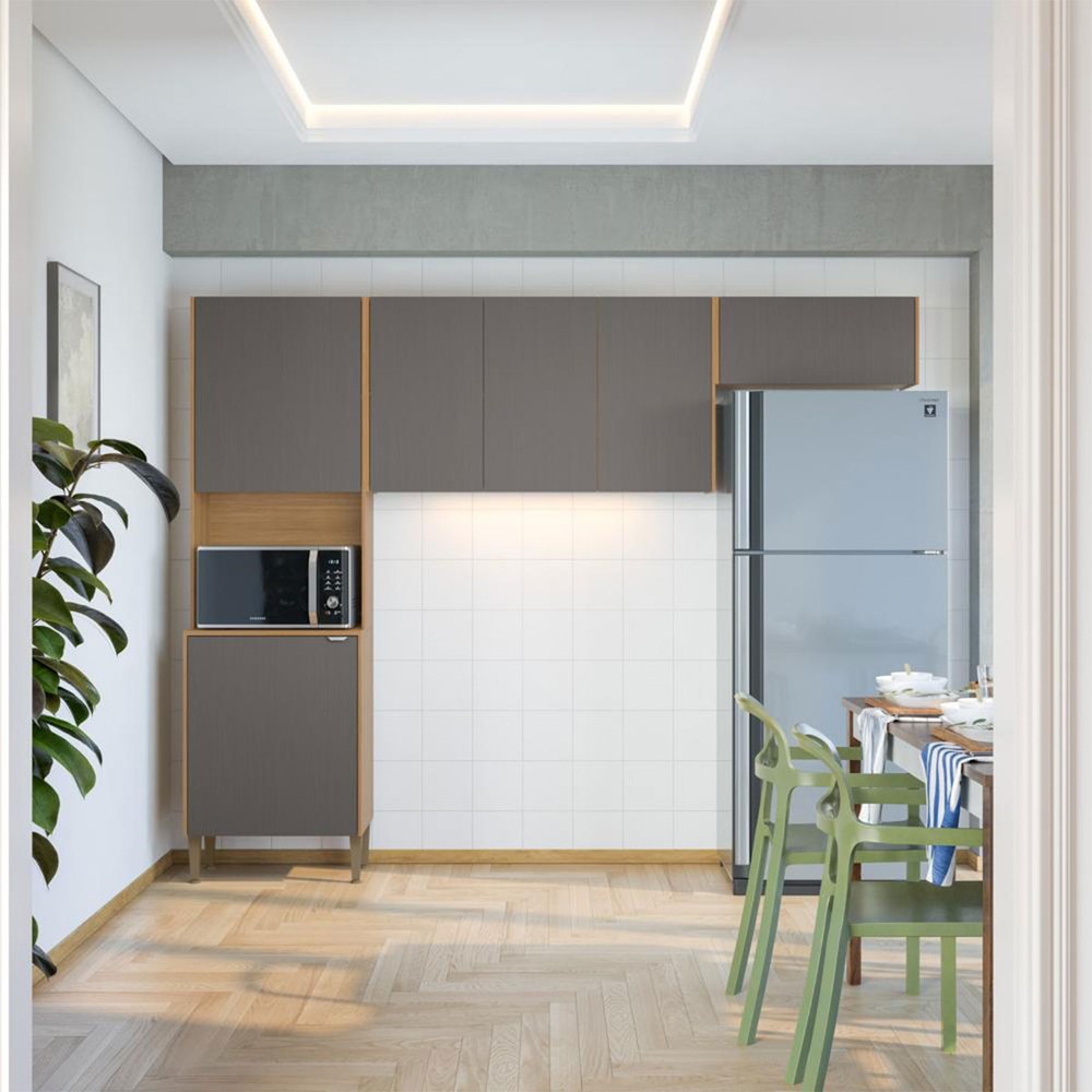 O(a) Cozinha Compacta Soul 6 Portas Freijó/Gris - Kits Paraná é produzido em MDP na escala de brilho Brilho e Fosca com Textura, e possui um grau de dificuldade de montagem: Médio.