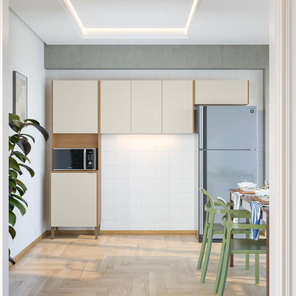 O(a) Cozinha Compacta Soul 6 Portas Freijó/Soft - Kits Paraná é produzido em MDP na escala de brilho Brilho e Fosca com Textura, e possui um grau de dificuldade de montagem: Médio.