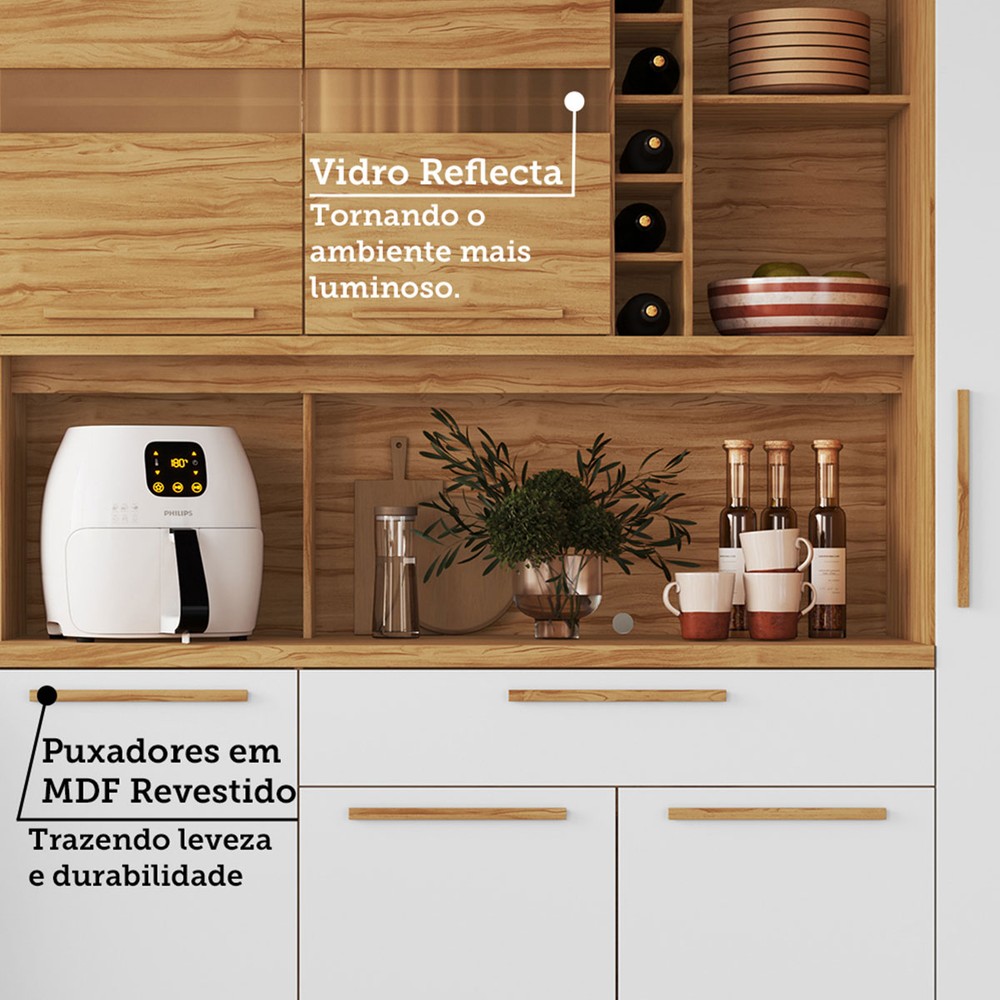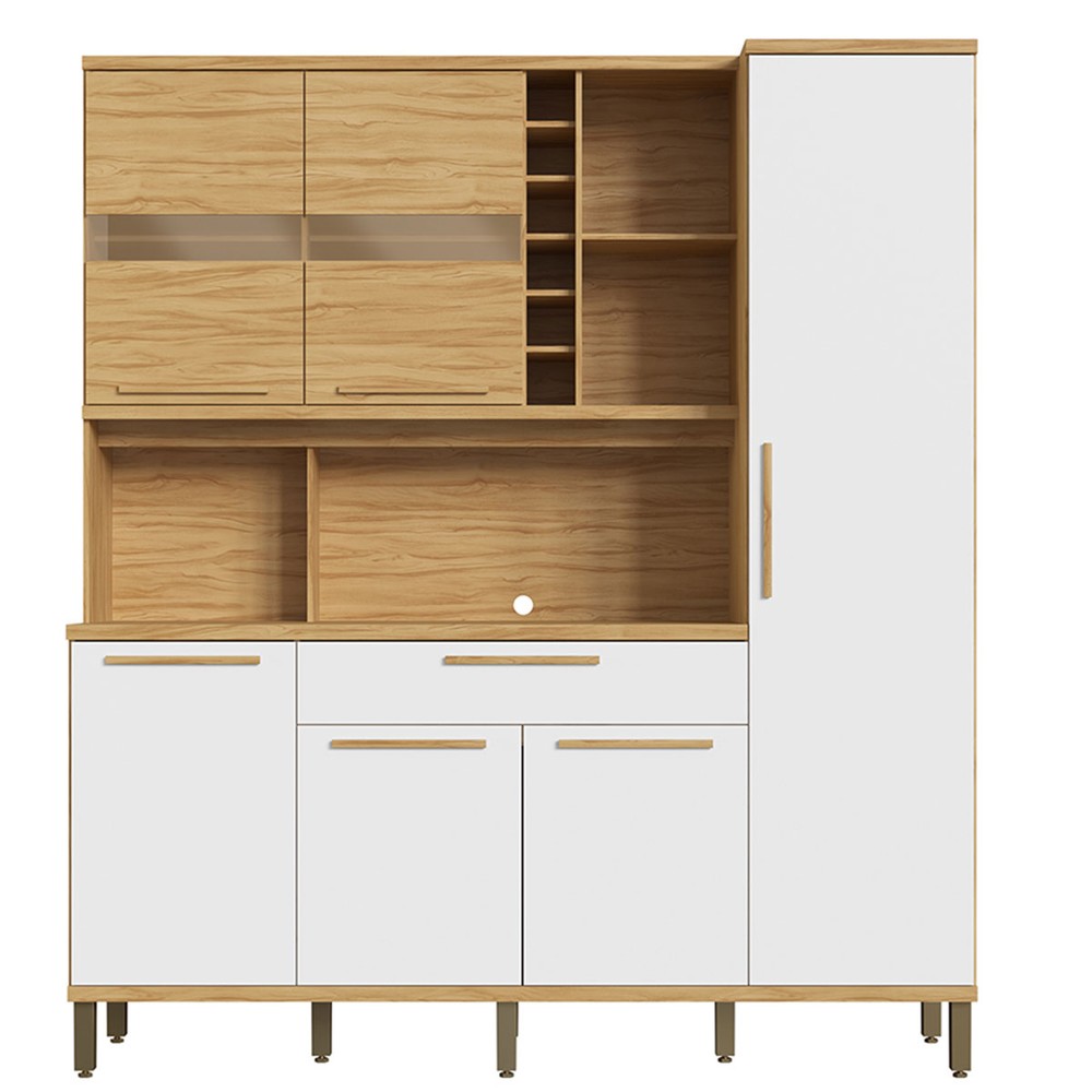 O(a) Cozinha Compacta Touriga 6 Portas 1 Gaveta 100% Mdf com Vidro Amêndoa/Branco - Rio Doce é produzido em 100% MDF na escala de brilho Semi-Brilho, e possui um grau de dificuldade de montagem: Difícil.