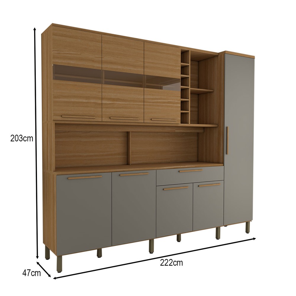 O(a) Cozinha Compacta Vanguardia 8 Portas 1 Gaveta 100% Mdf com Vidro Amêndoa/Cinza - Panorama Móveis é produzido em 100% MDF na escala de brilho Semi-Brilho, e possui um grau de dificuldade de montagem: Difícil.