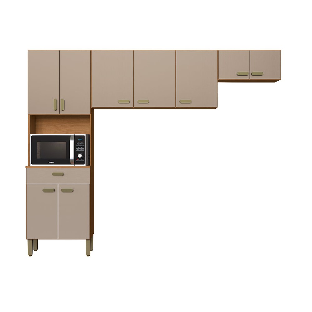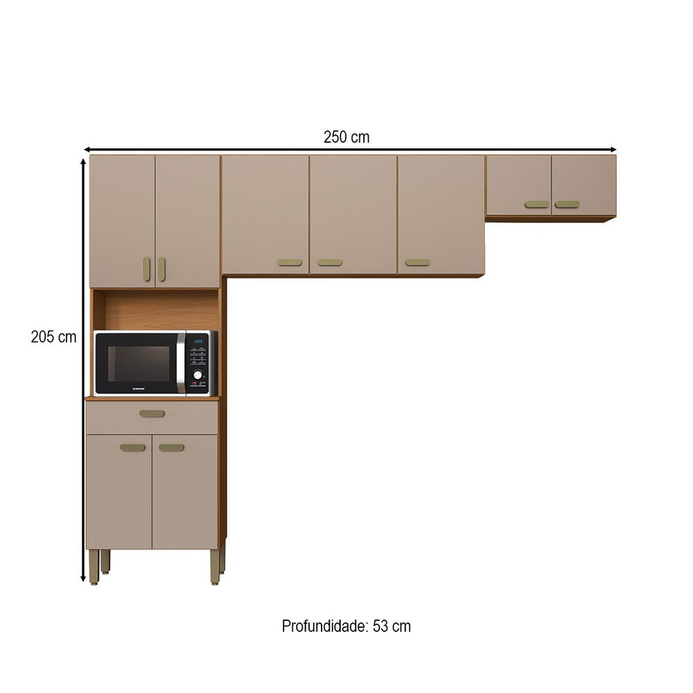 Cozinha Compacta Zurique 9 Portas 1 Gaveta Freijó/Camurça- Indekés