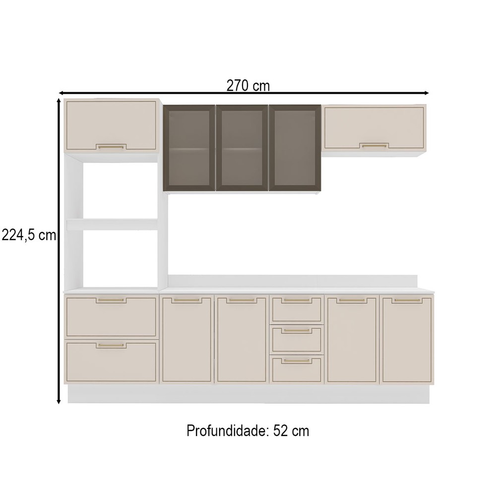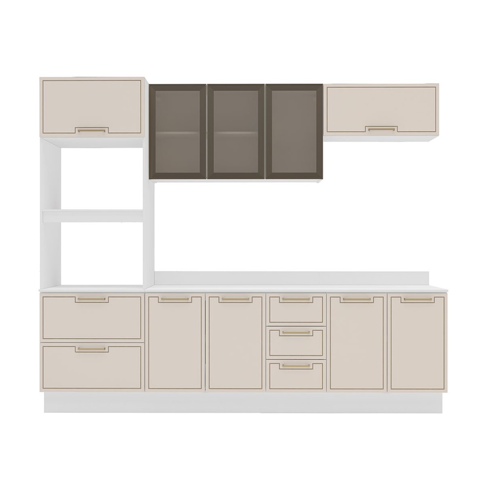 Cozinha Completa Amara 10 Portas 4 Gavetas com Vidro 40250782 Creme/Branco - Politorno