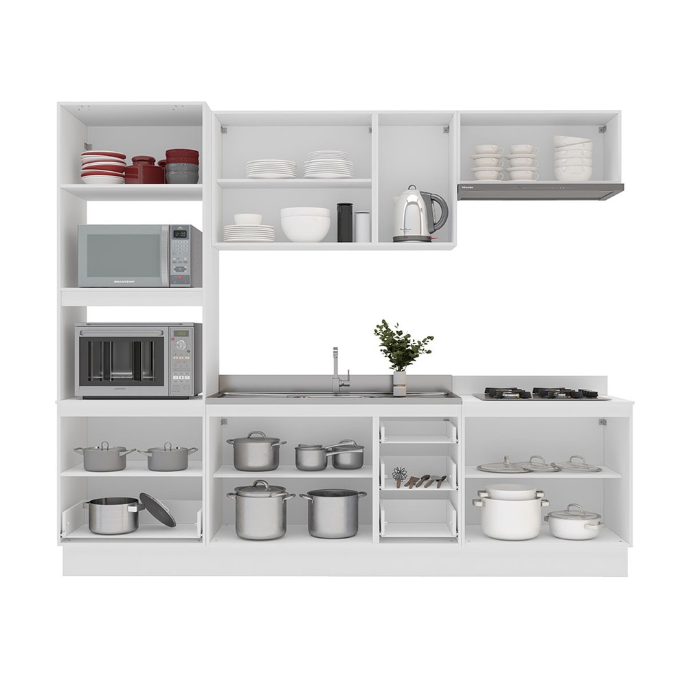 Cozinha Completa Amara 10 Portas 4 Gavetas com Vidro 40250784 Branco - Politorno