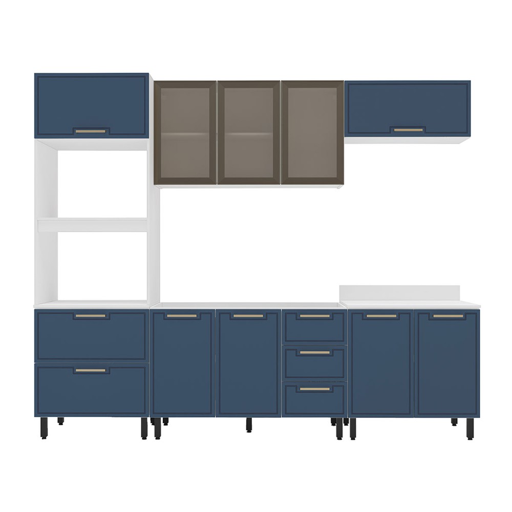 Cozinha Completa Amara 10 Portas 4 Gavetas com Vidro 40250785 Azul/Branco - Politorno