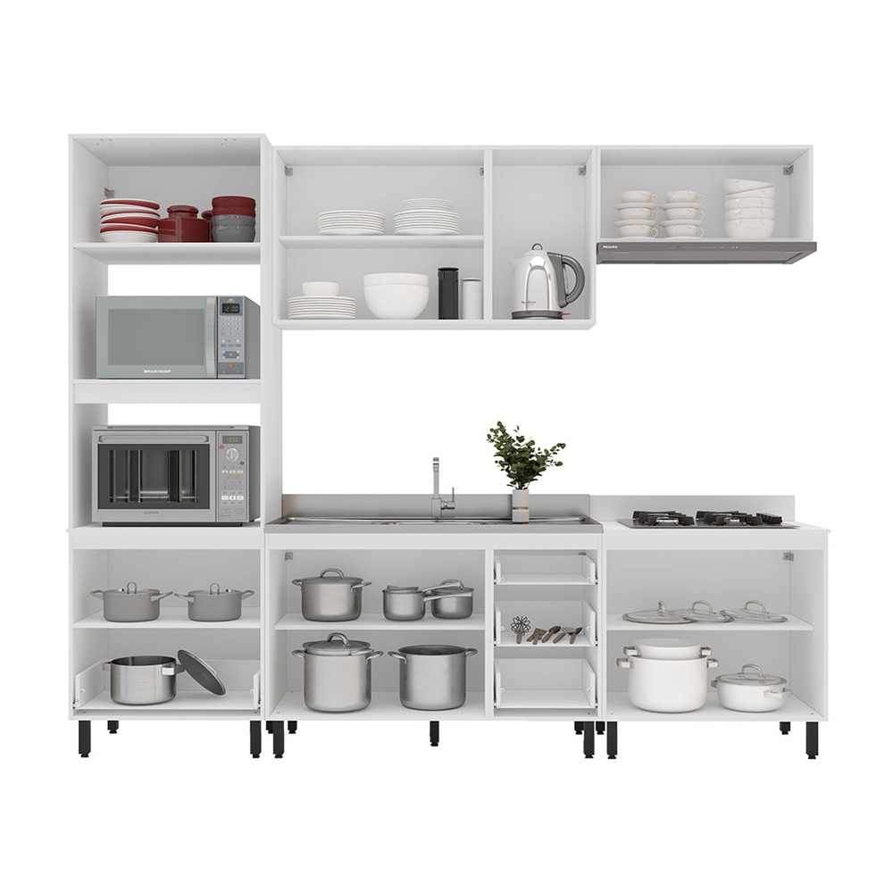Cozinha Completa Amara 10 Portas 4 Gavetas com Vidro 40250785 Branco - Politorno