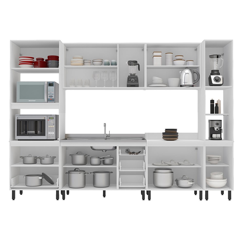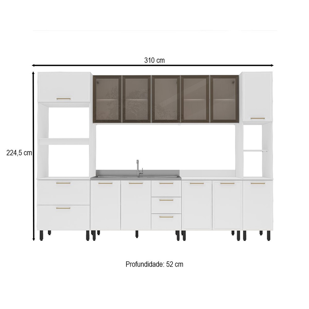 Cozinha Completa Amara 13 Portas 4 Gavetas com Vidro 40250777 Branco - Politorno