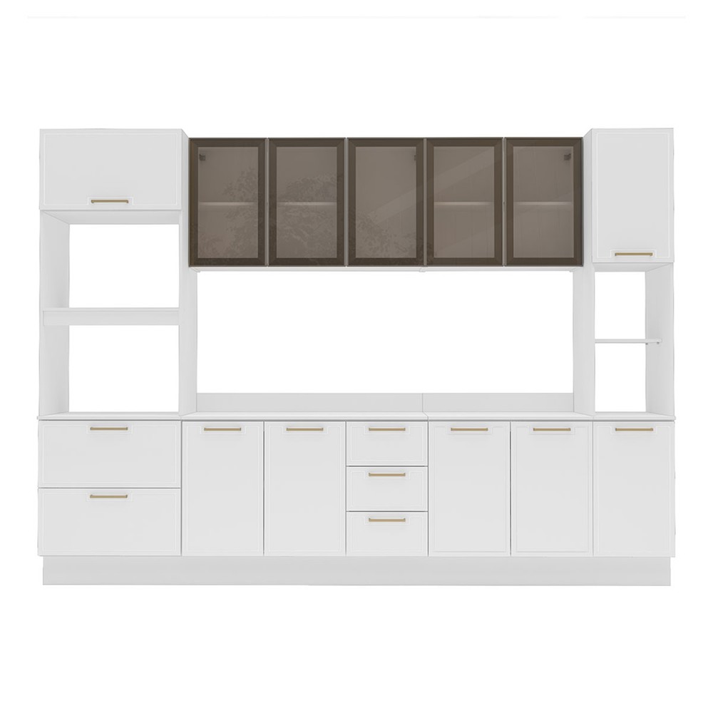 Cozinha Completa Amara 13 Portas 4 Gavetas com Vidro Branco - Politorno