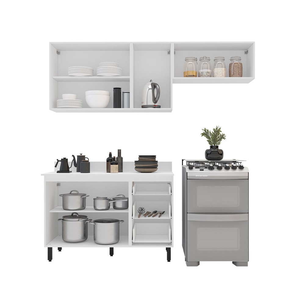 O(a) Cozinha Completa Amara 6 Portas 3 Gavetas Branco/Azul - Politorno é produzido em MDF e MDP na escala de brilho Semi-Fosco, e possui um grau de dificuldade de montagem: Médio.