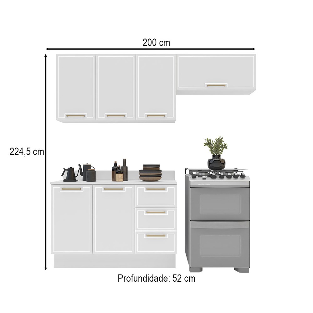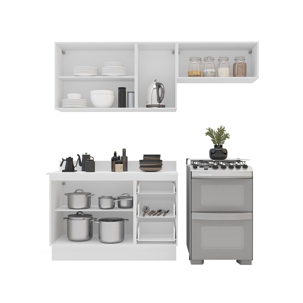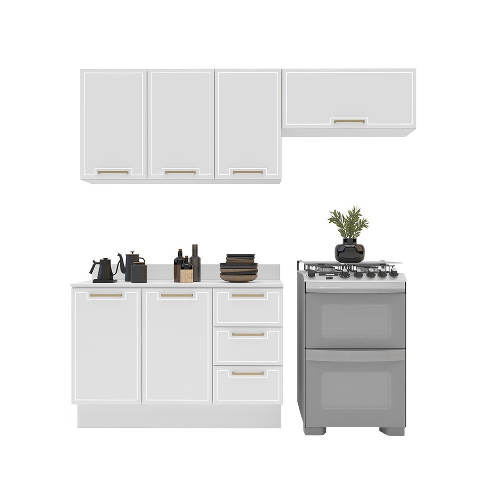 O(a) Cozinha Completa Amara 6 Portas 3 Gavetas 40250093 Branco - Politorno é produzido em MDF e MDP na escala de brilho Semi-Fosco, e possui um grau de dificuldade de montagem: Médio.
