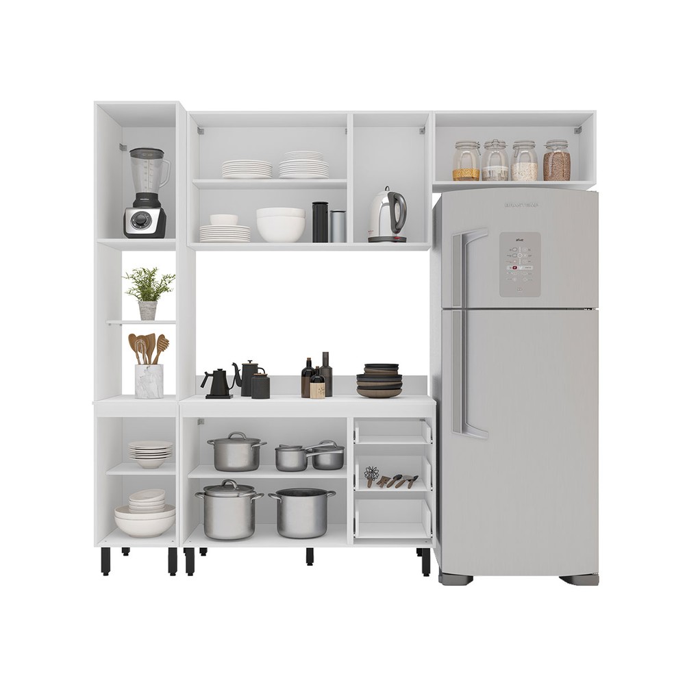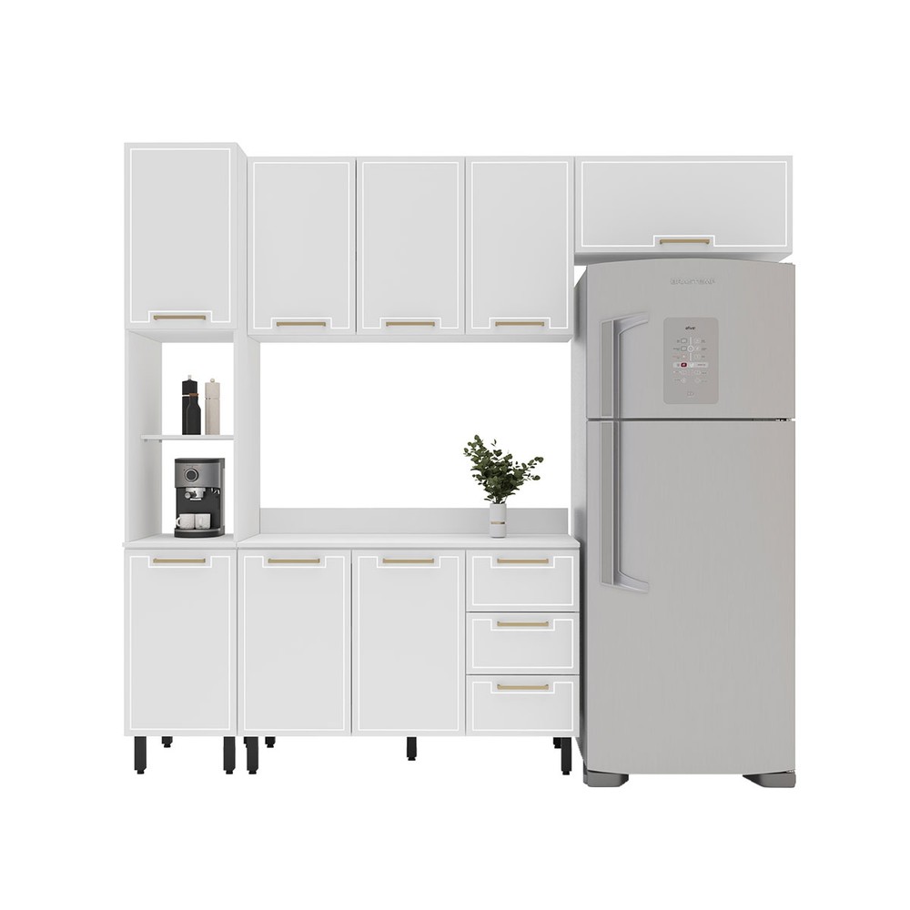 O(a) Cozinha Completa Amara 8 Portas 3 Gavetas 40250090 Branco - Politorno é produzido em MDF e MDP na escala de brilho Semi-Fosco, e possui um grau de dificuldade de montagem: Médio.