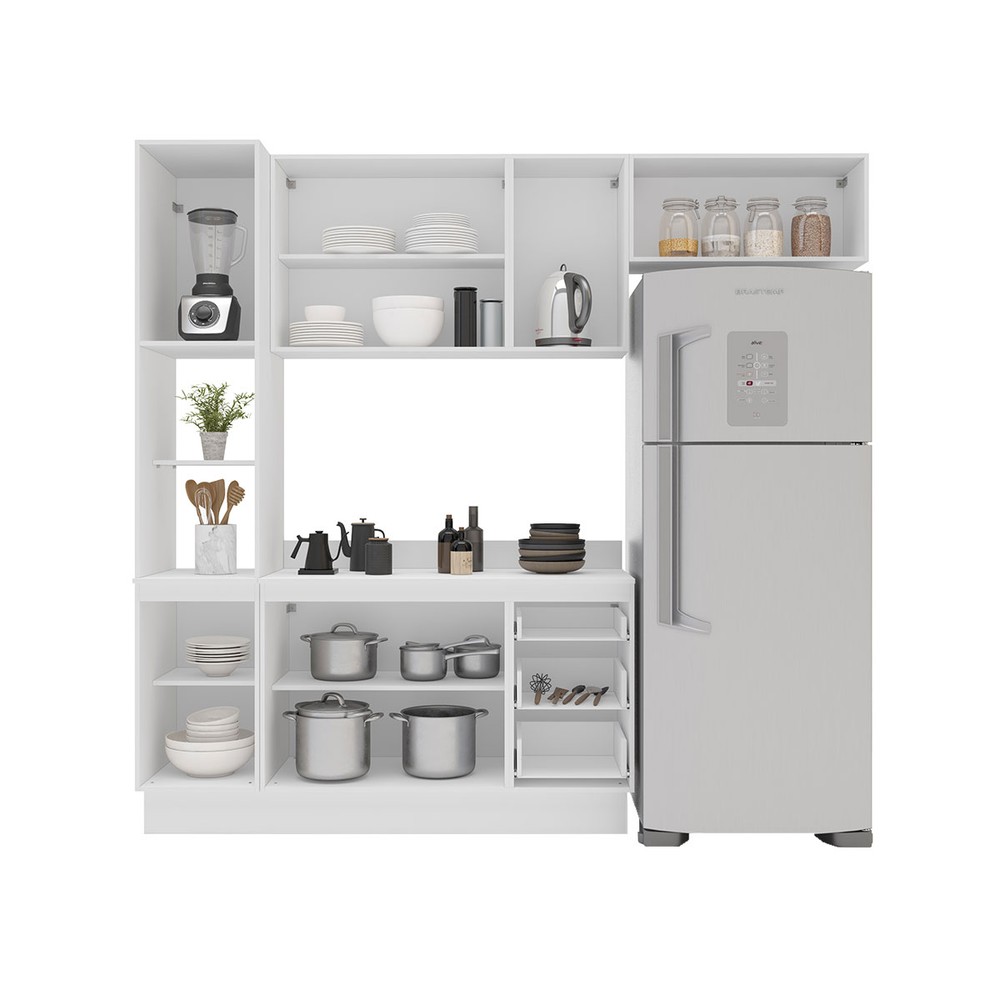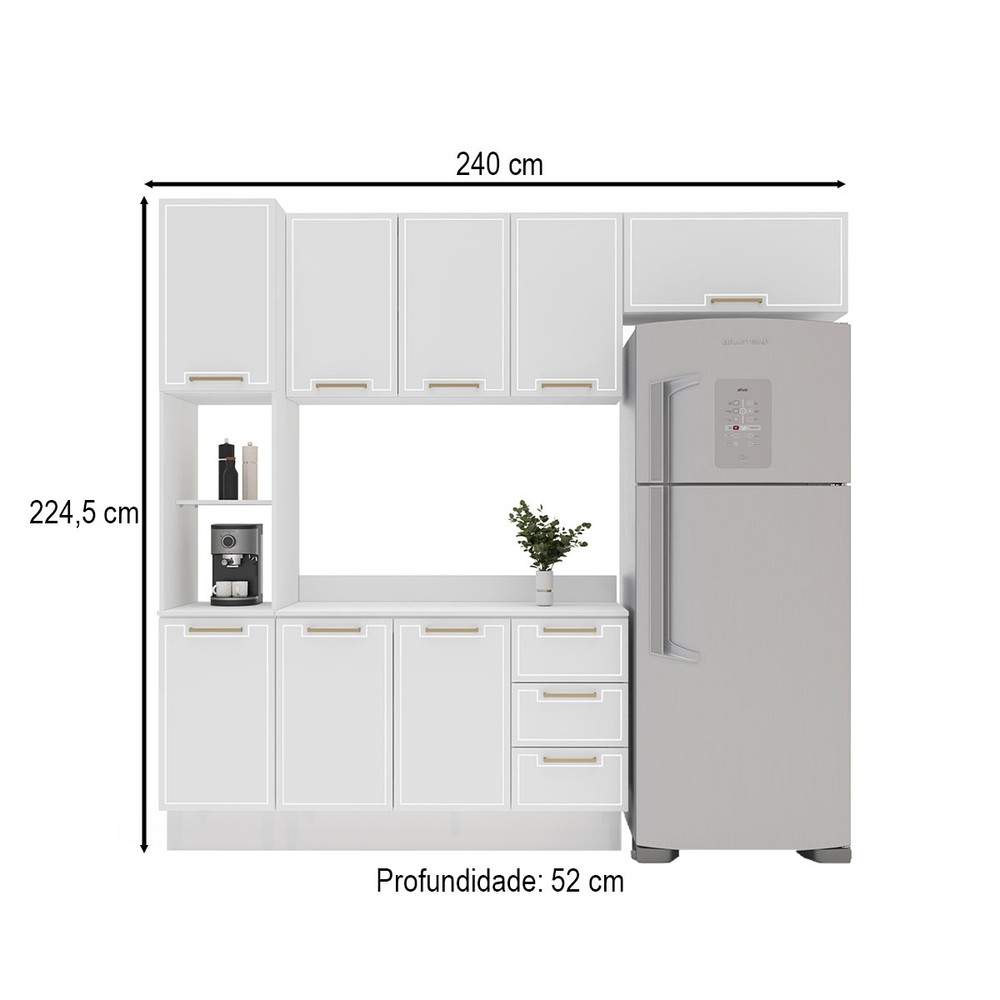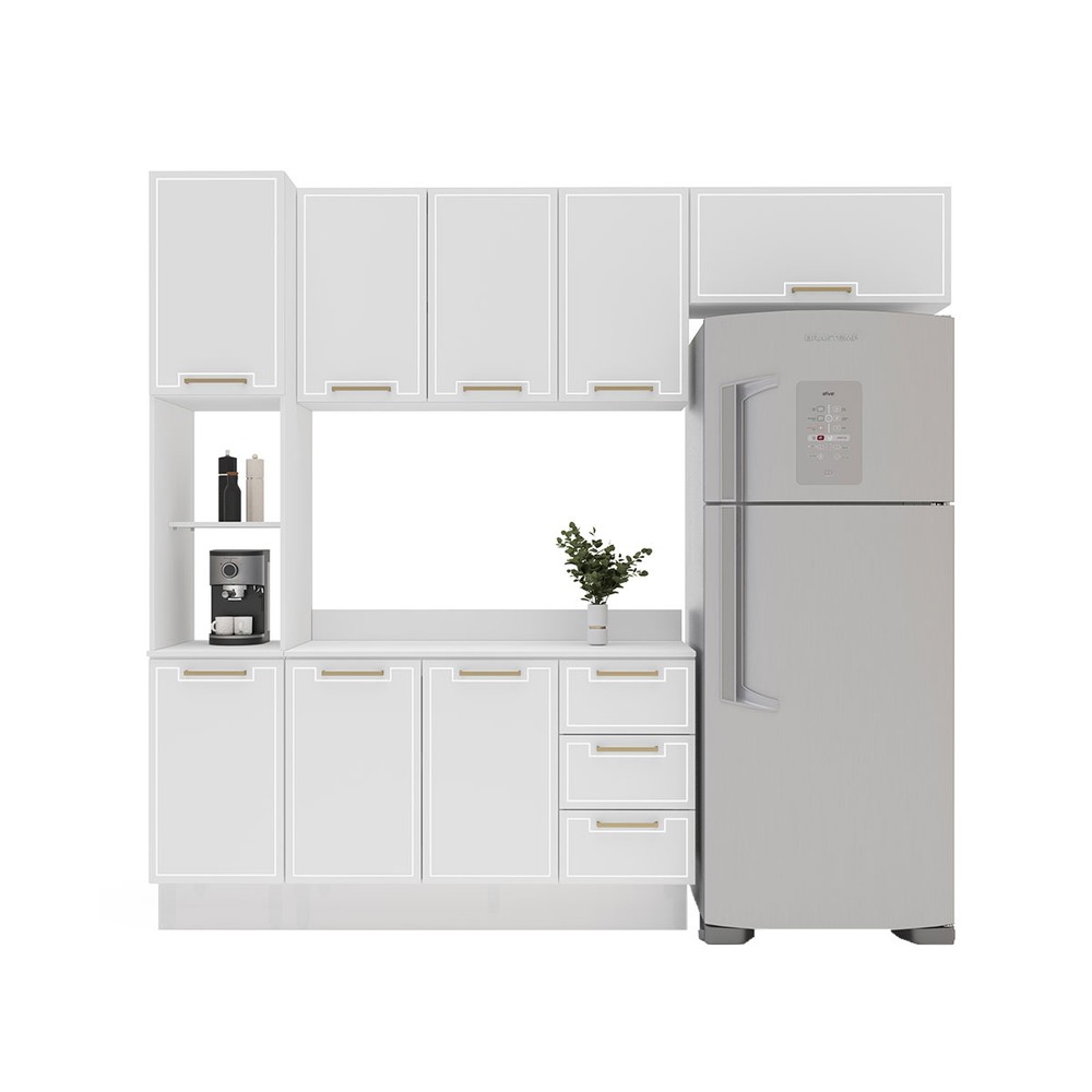 O(a) Cozinha Completa Amara 8 Portas 3 Gavetas 40250096 Branco - Politorno é produzido em MDF e MDP na escala de brilho Semi-Fosco, e possui um grau de dificuldade de montagem: Médio.