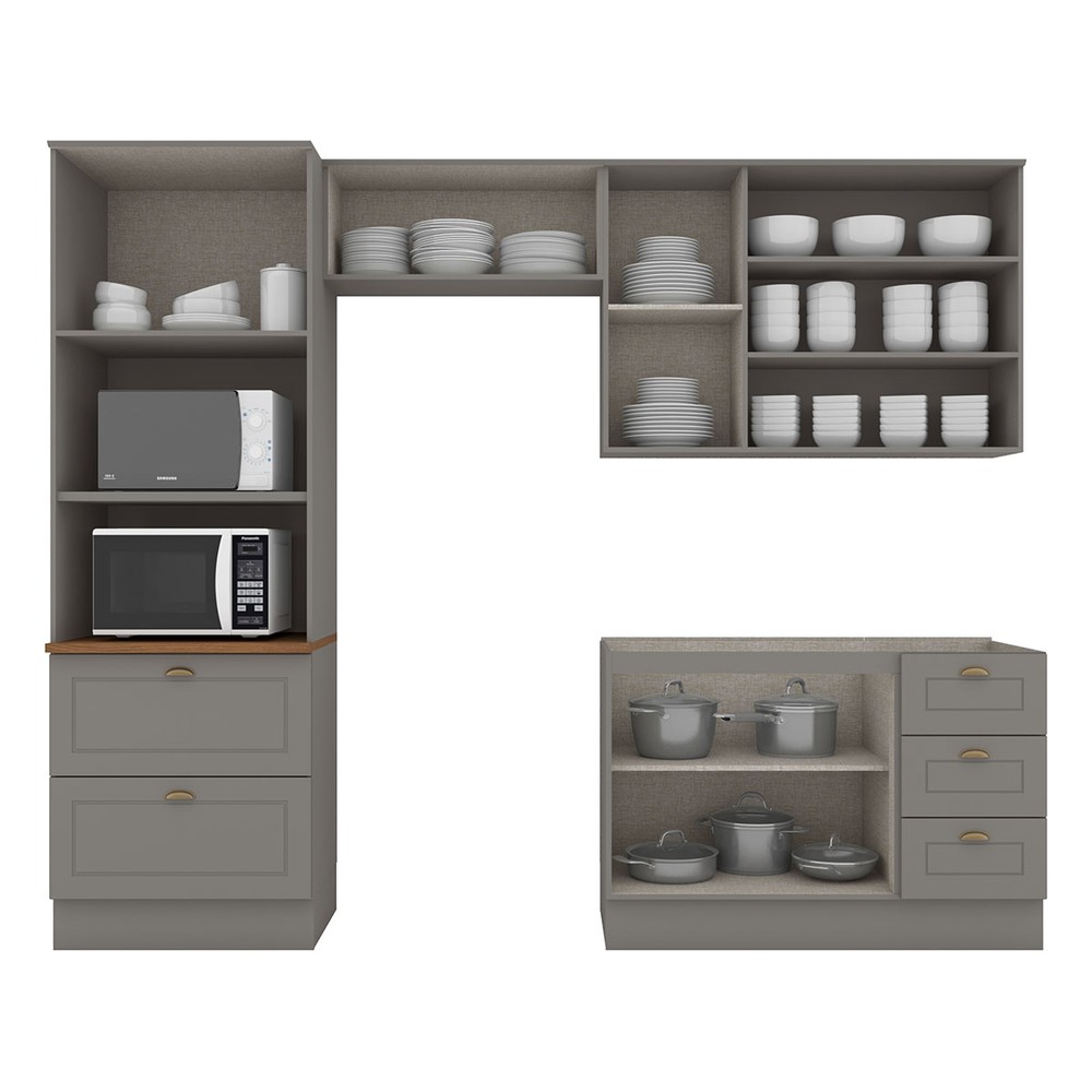 Cozinha Completa Americana 8 Portas 5 Gavetas com Vidro 100% Mdfcinza/Nature - Henn
