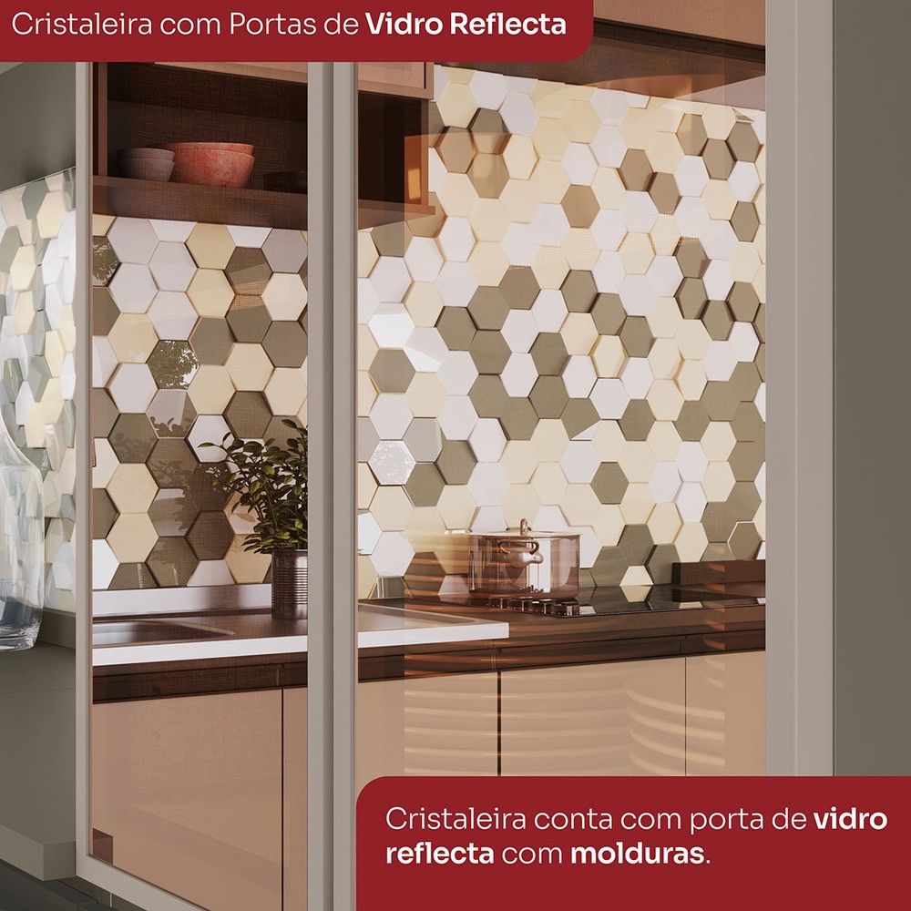 O(a) Cozinha Completa Connect 13 Portas 2 Gavetas com Vidro 100% Mdf Duna/Cristal Ii - Henn é produzido em 100% MDF na escala de brilho Fosco, e possui um grau de dificuldade de montagem: Médio.