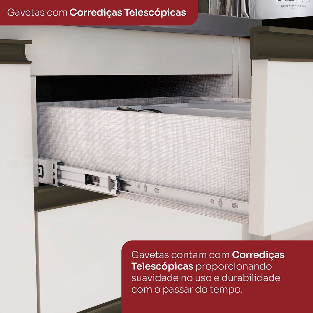 Cozinha Completa Connect 19 Portas 2 Gavetas com Vidro 100% Mdf Off White - Henn