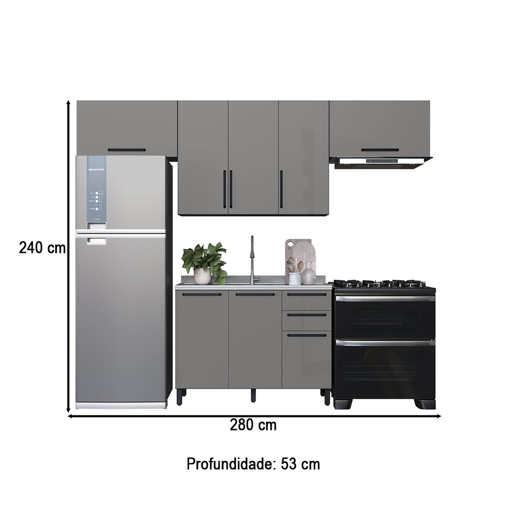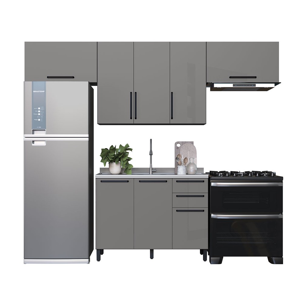 Cozinha Completa Diamante 7 Portas 3 Gavetas Chumbo/Titanio - Indékes