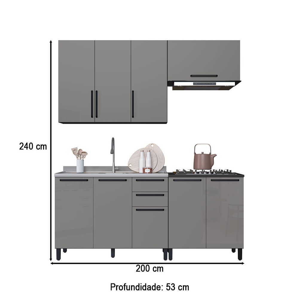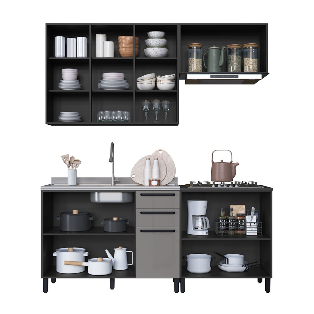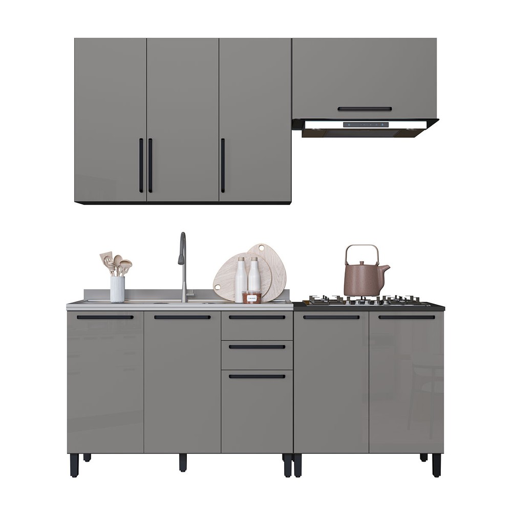 Cozinha Completa Diamante 8 Portas 3 Gavetas Chumbo/Titanio - Indékes
