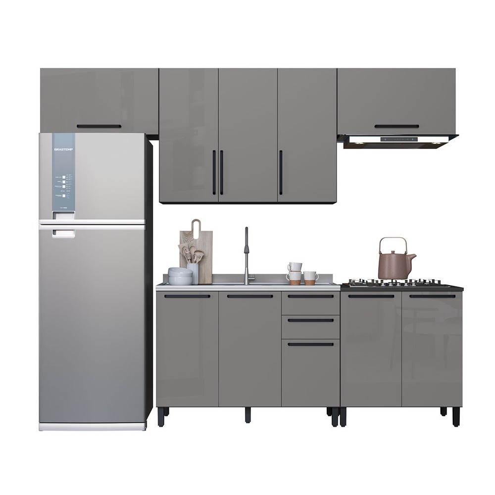 Cozinha Completa Diamante 9 Portas 3 Gavetas Chumbo/Titanio - Indékes