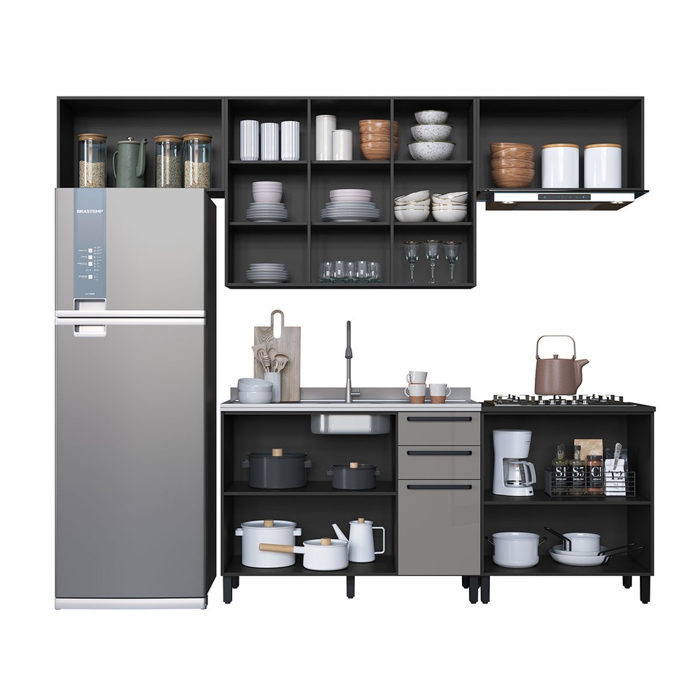 O(a) Cozinha Completa Diamante 9 Portas 3 Gavetas Chumbo/Titanio - Indékes é produzido em MDP na escala de brilho Acetinado, e possui um grau de dificuldade de montagem: Médio.