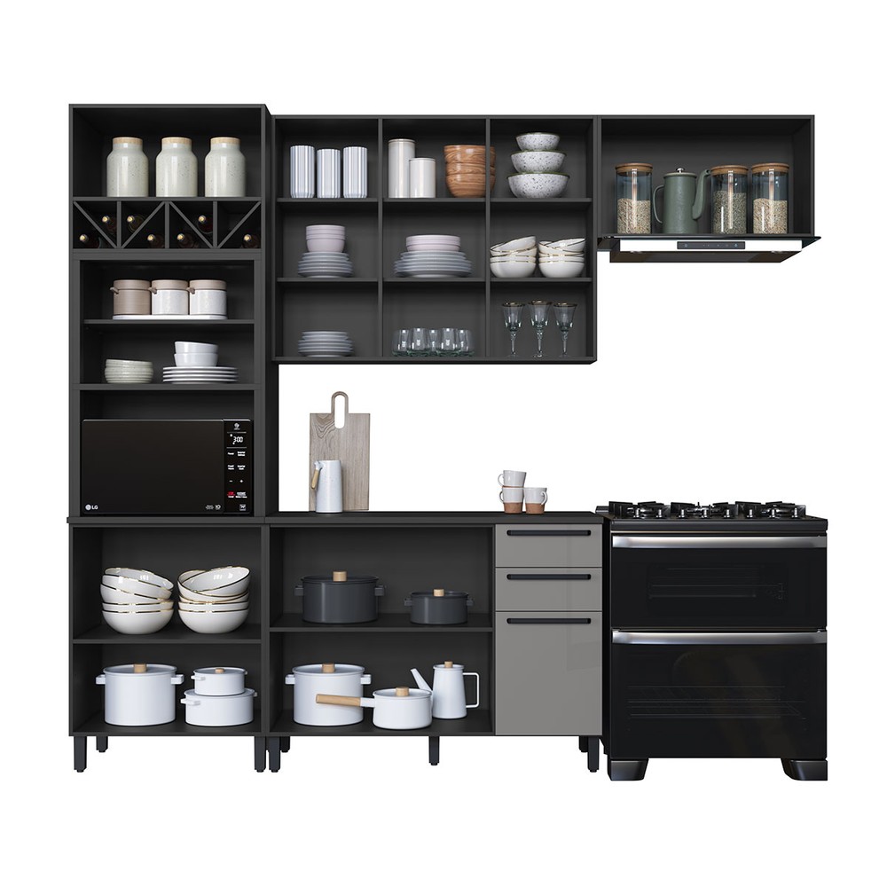 O(a) Cozinha Completa Diamante 9 Portas 3 Gavetas com Vidro Chumbo/Titanio - Indékes é produzido em MDP na escala de brilho Acetinado, e possui um grau de dificuldade de montagem: Médio.