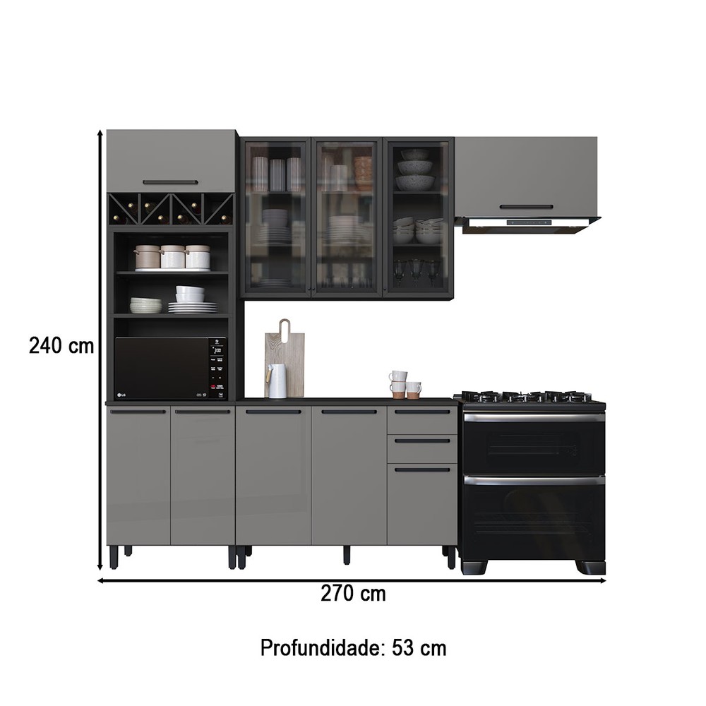 Cozinha Completa Diamante 9 Portas 3 Gavetas com Vidro Chumbo/Titanio - Indékes