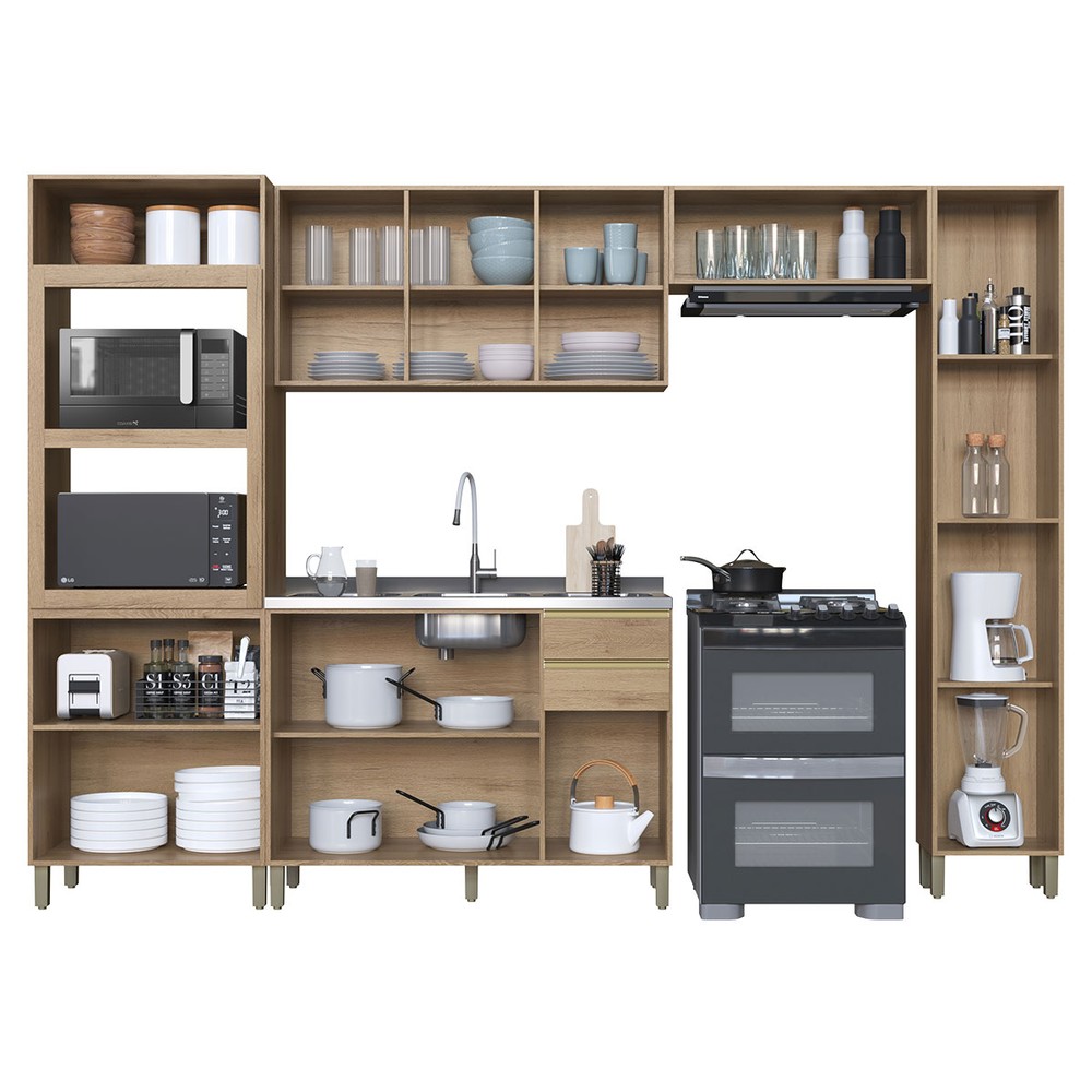 Cozinha Completa Dinamarca 12 Portas 2 Gavetas 6123.150 Castani - Indékes