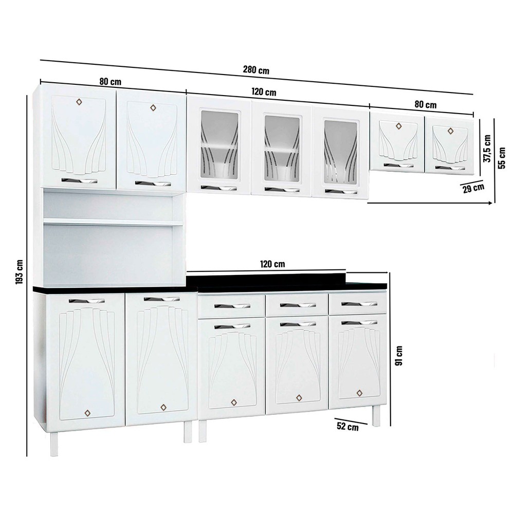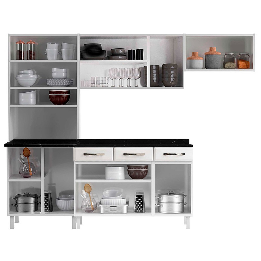 Cozinha Completa em Aço Star New 12 Portas 3 Gavetas com Vidro Branco - Telasul