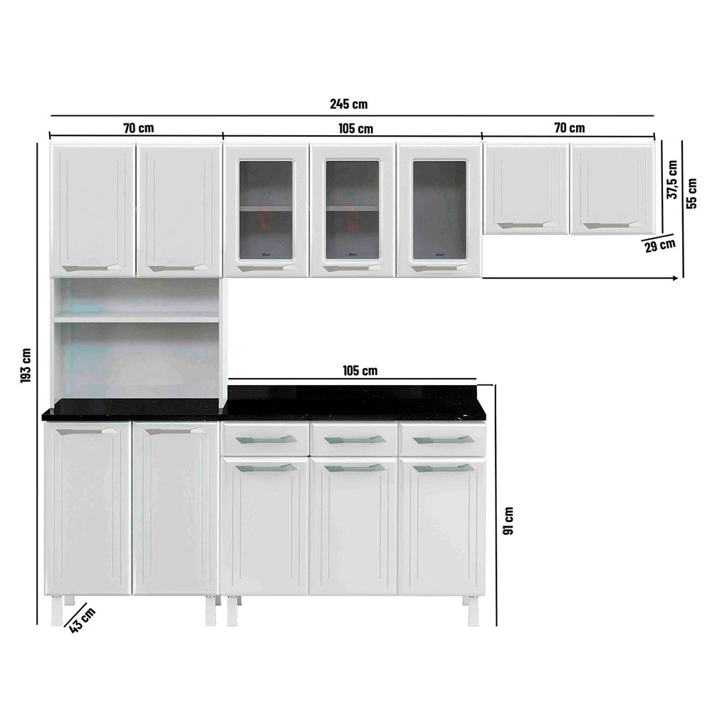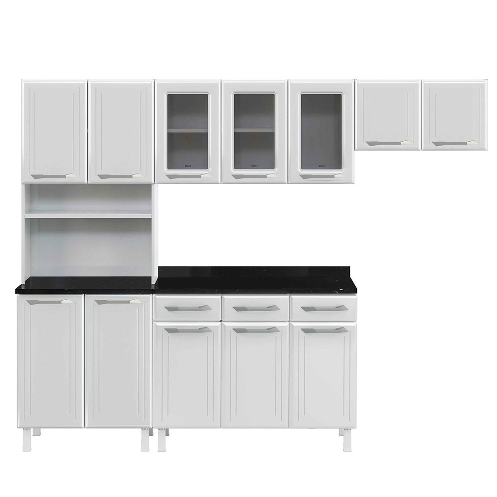 Cozinha Completa em Aço Topázio 12 Portas 3 Gavetas com Vidro Branco - Telasul