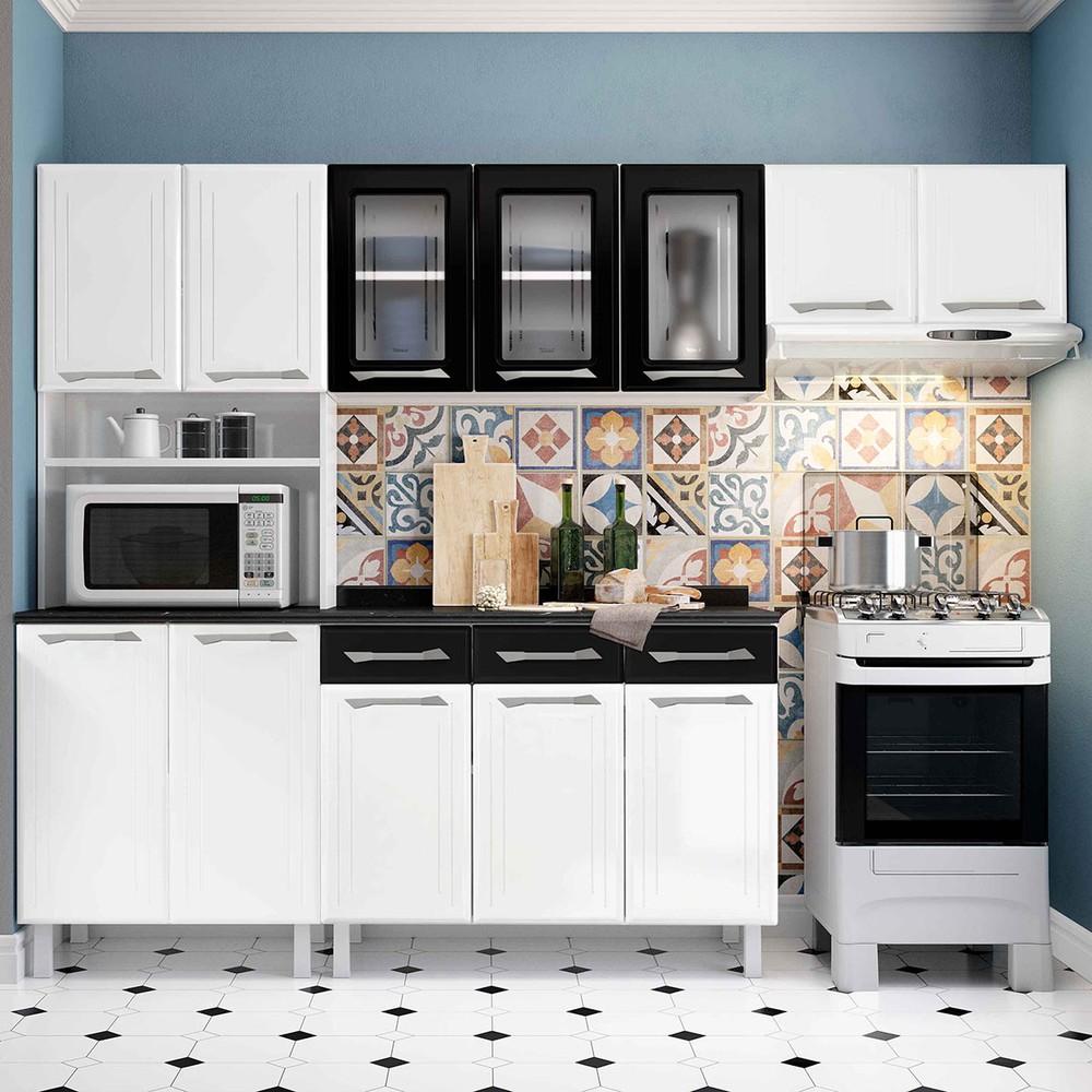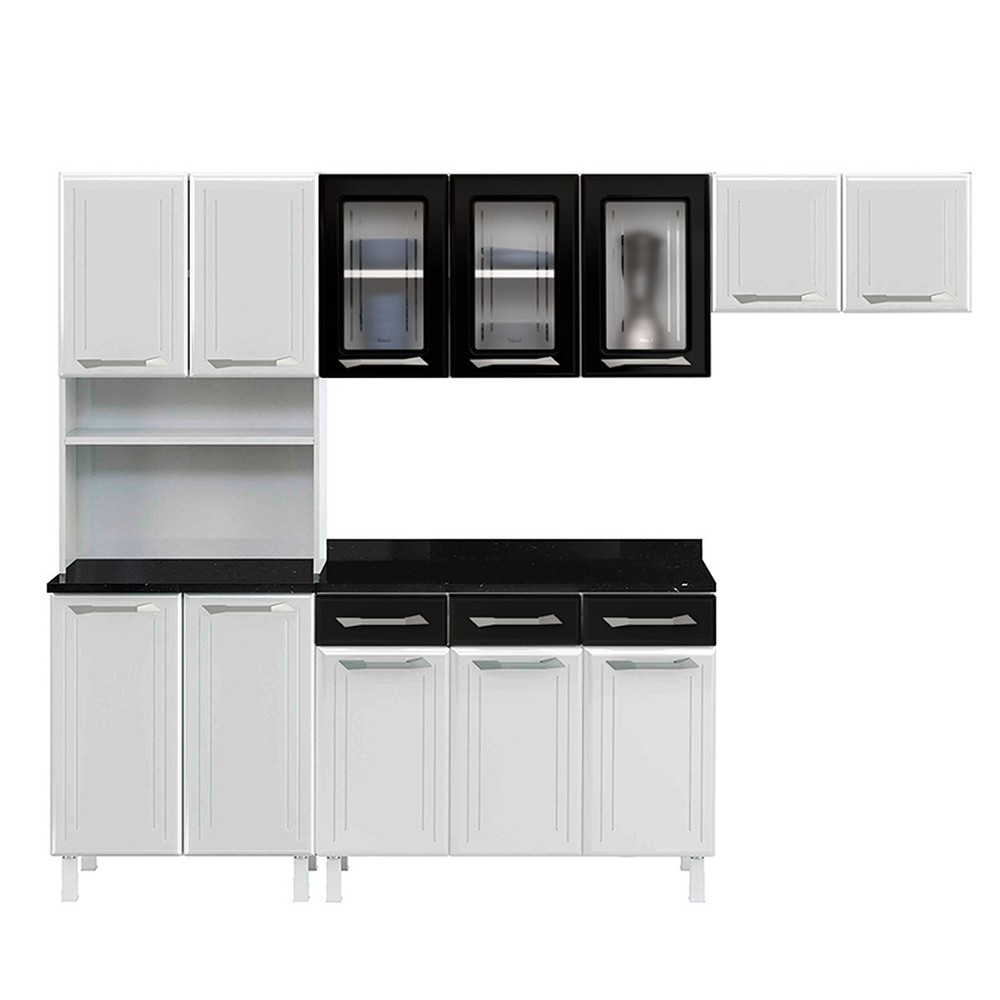 Cozinha Completa em Aço Topázio 12 Portas 3 Gavetas com Vidro Preto - Telasul