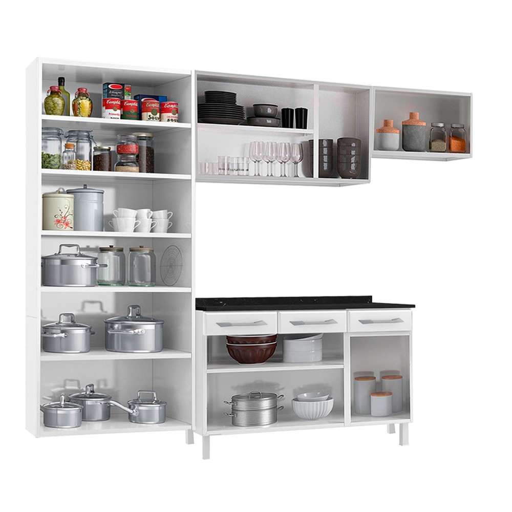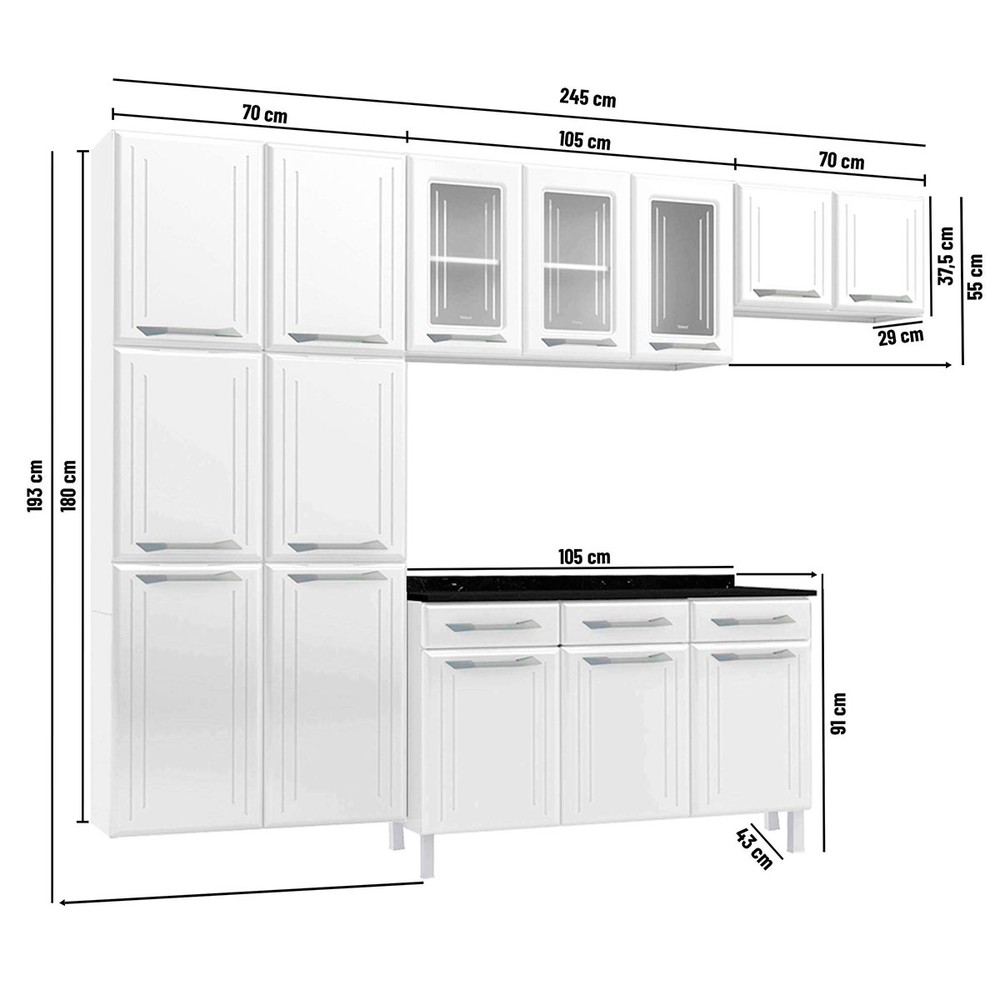 O(a) Cozinha Completa em Aço Topázio 14 Portas 3 Gavetas com Vidro Branco - Telasul é produzido em Aço na escala de brilho Semi-Brilho, e possui um grau de dificuldade de montagem: Médio.