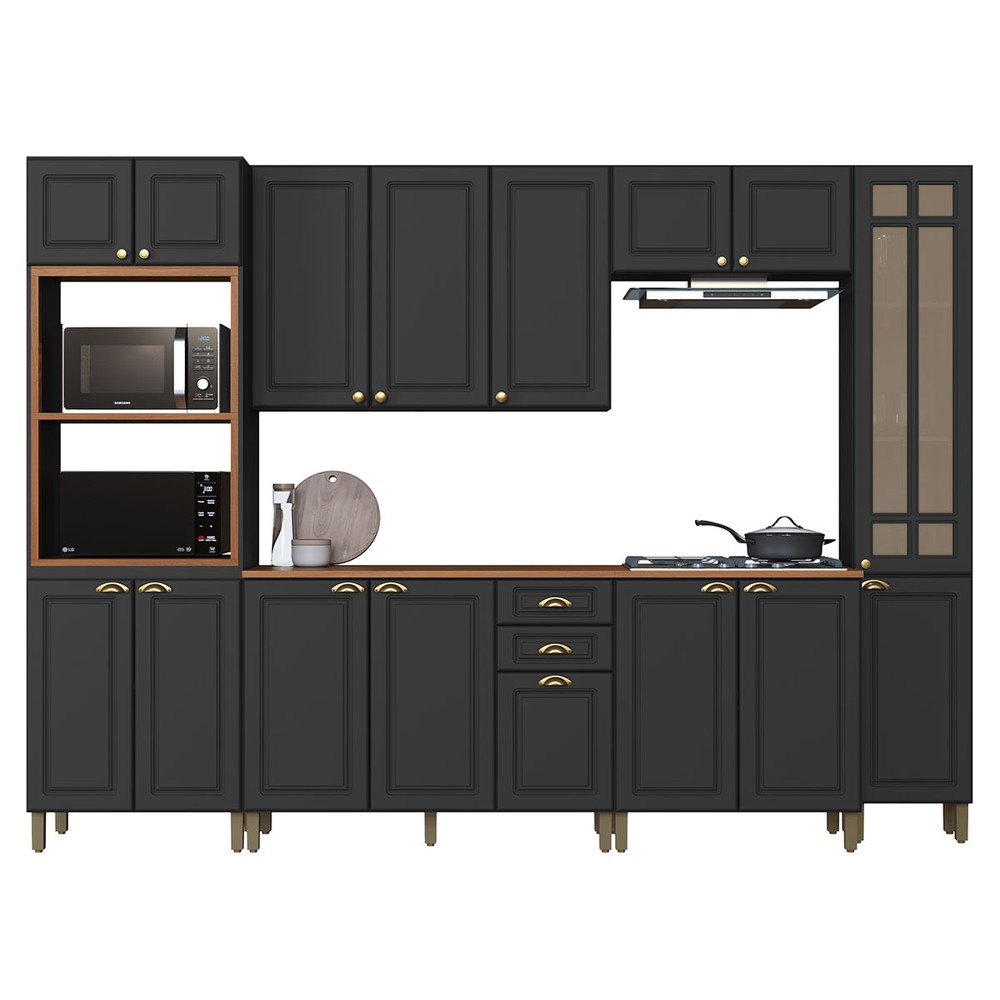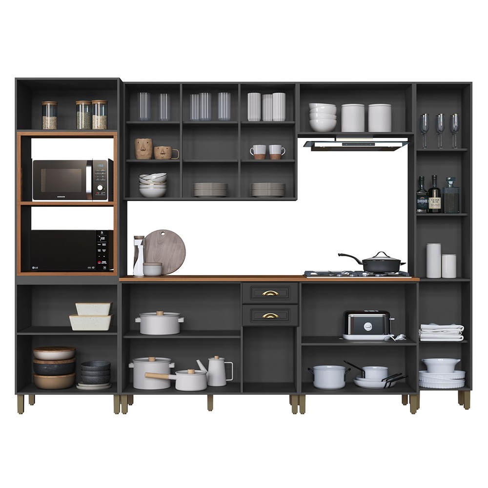 O(a) Cozinha Completa Firenze 16 Portas 2 Gavetas com Vidro 6171.101 Chumbo - Indékes é produzido em MDP na escala de brilho Fosco, e possui um grau de dificuldade de montagem: Médio.