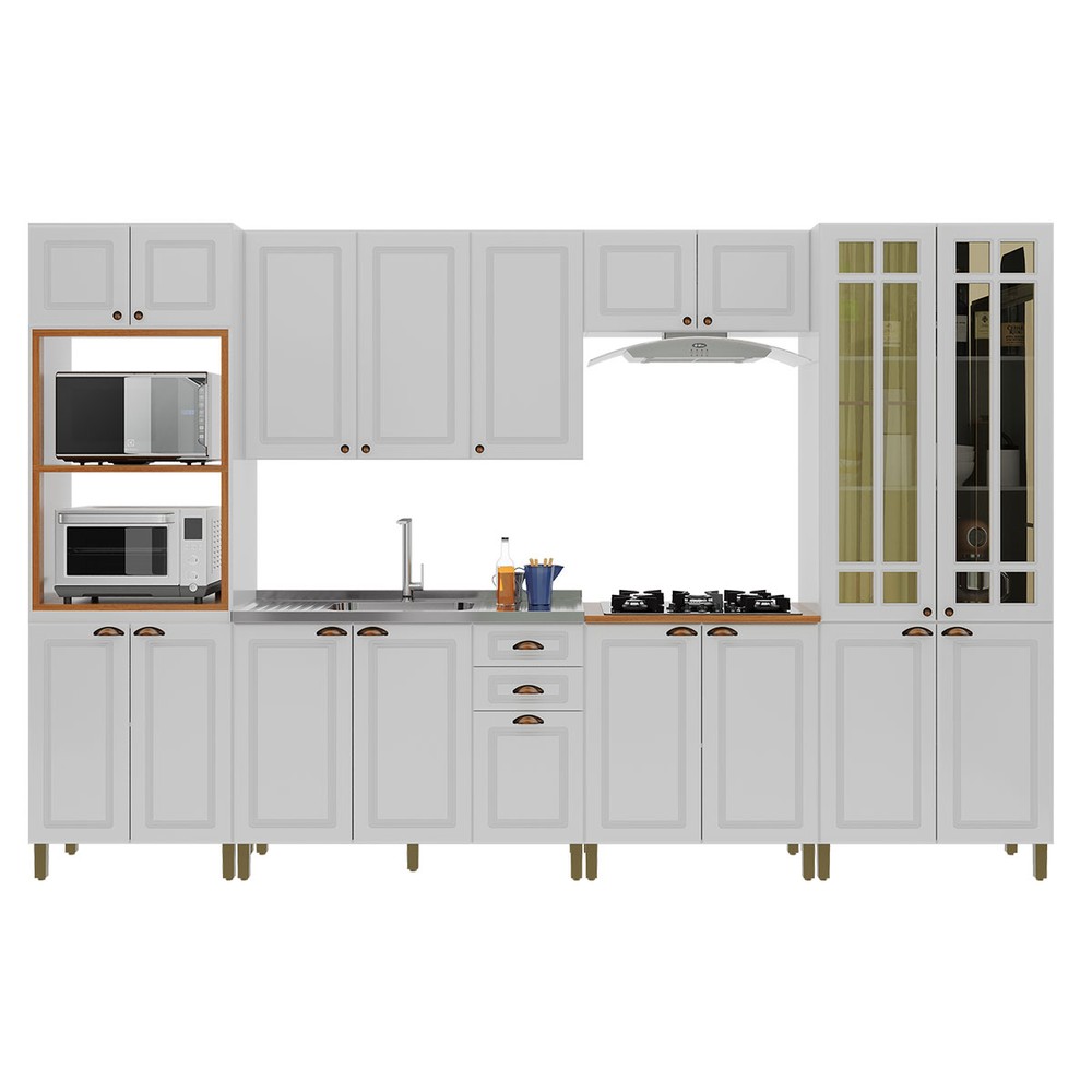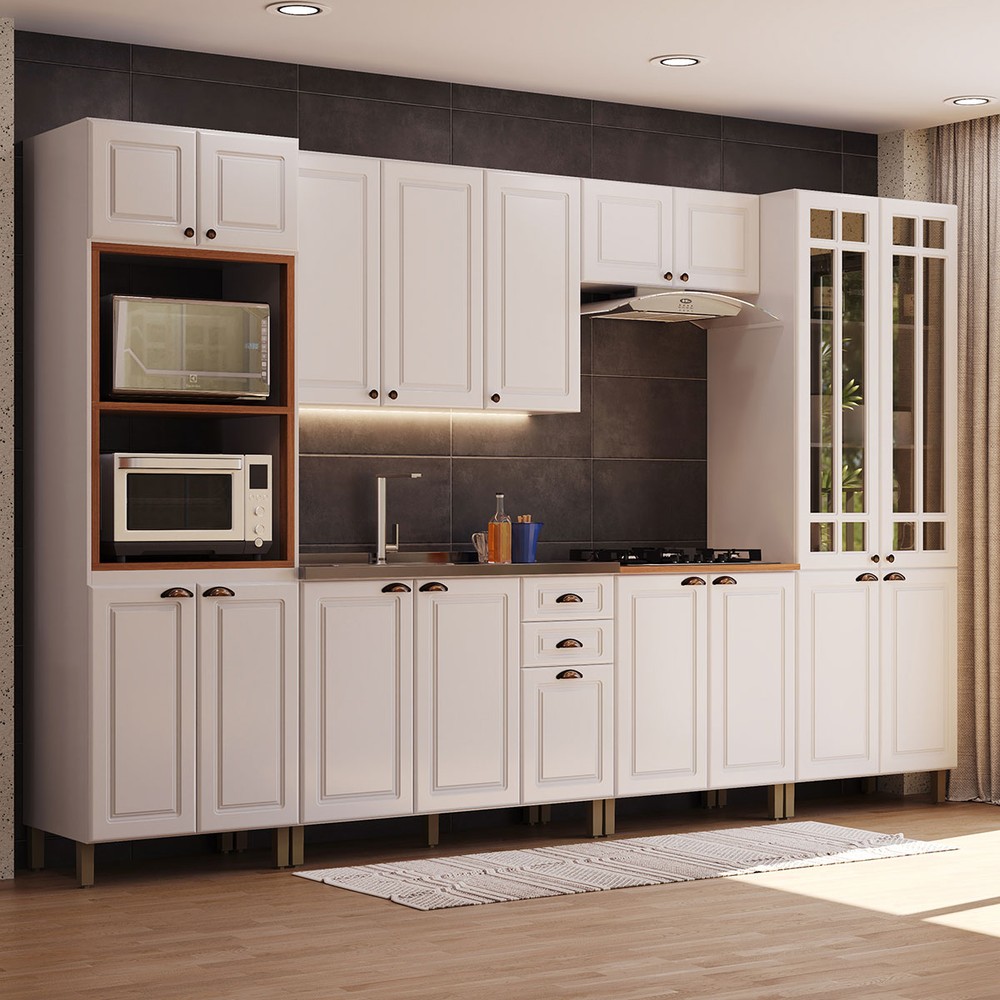 O(a) Cozinha Completa Firenze 18 Portas 2 Gavetas com Vidro 6171.102 Branco - Indékes é produzido em MDP na escala de brilho Fosco, e possui um grau de dificuldade de montagem: Médio.
