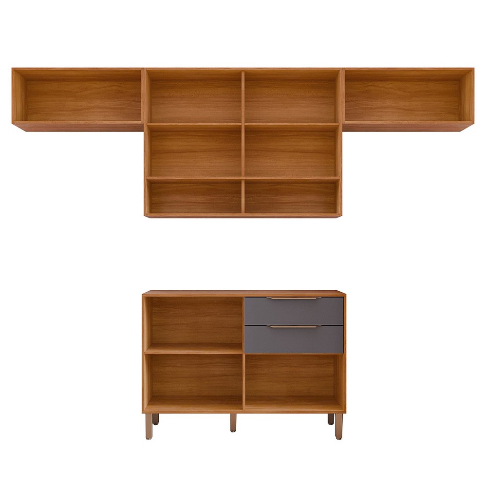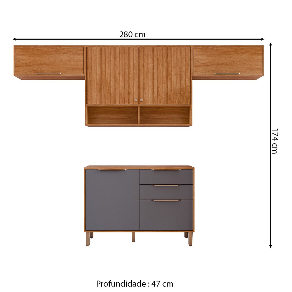 Cozinha Completa Helena 6 Portas 2 Gavetas Ripado Cinamomo/Titanium - Pnr Móveis