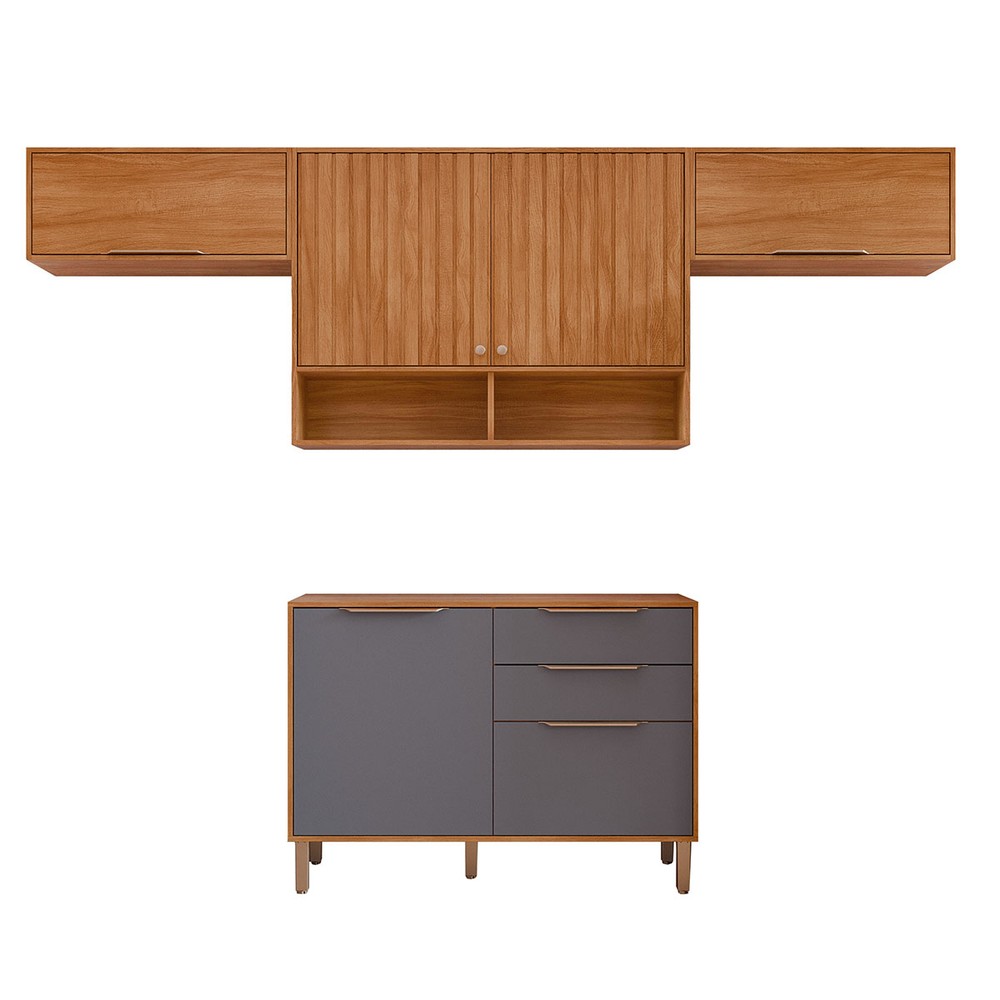 O(a) Cozinha Completa Helena 6 Portas 2 Gavetas Ripado Cinamomo/Titanium - Pnr Móveis é produzido em MDF na escala de brilho Fosco, e possui um grau de dificuldade de montagem: Médio.