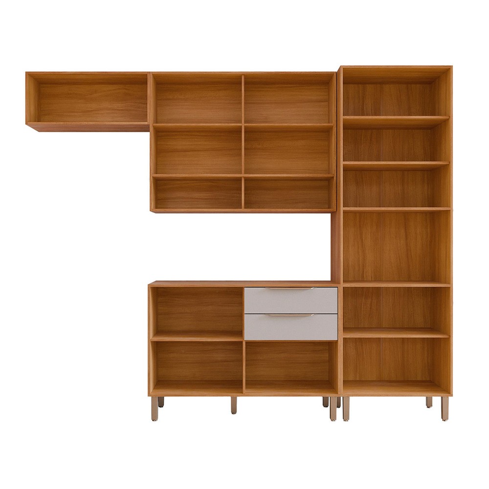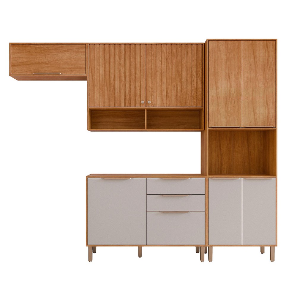 Cozinha Completa Helena 9 Portas 2 Gavetas Ripado Cinamomo/Off White - Pnr Móveis