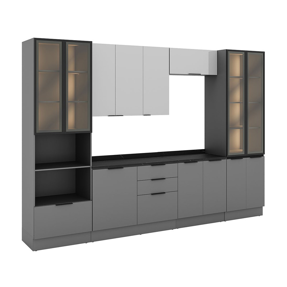 Cozinha Completa Lumina 13 Portas 4 Gavetas com Vidro Cinza - Telasul