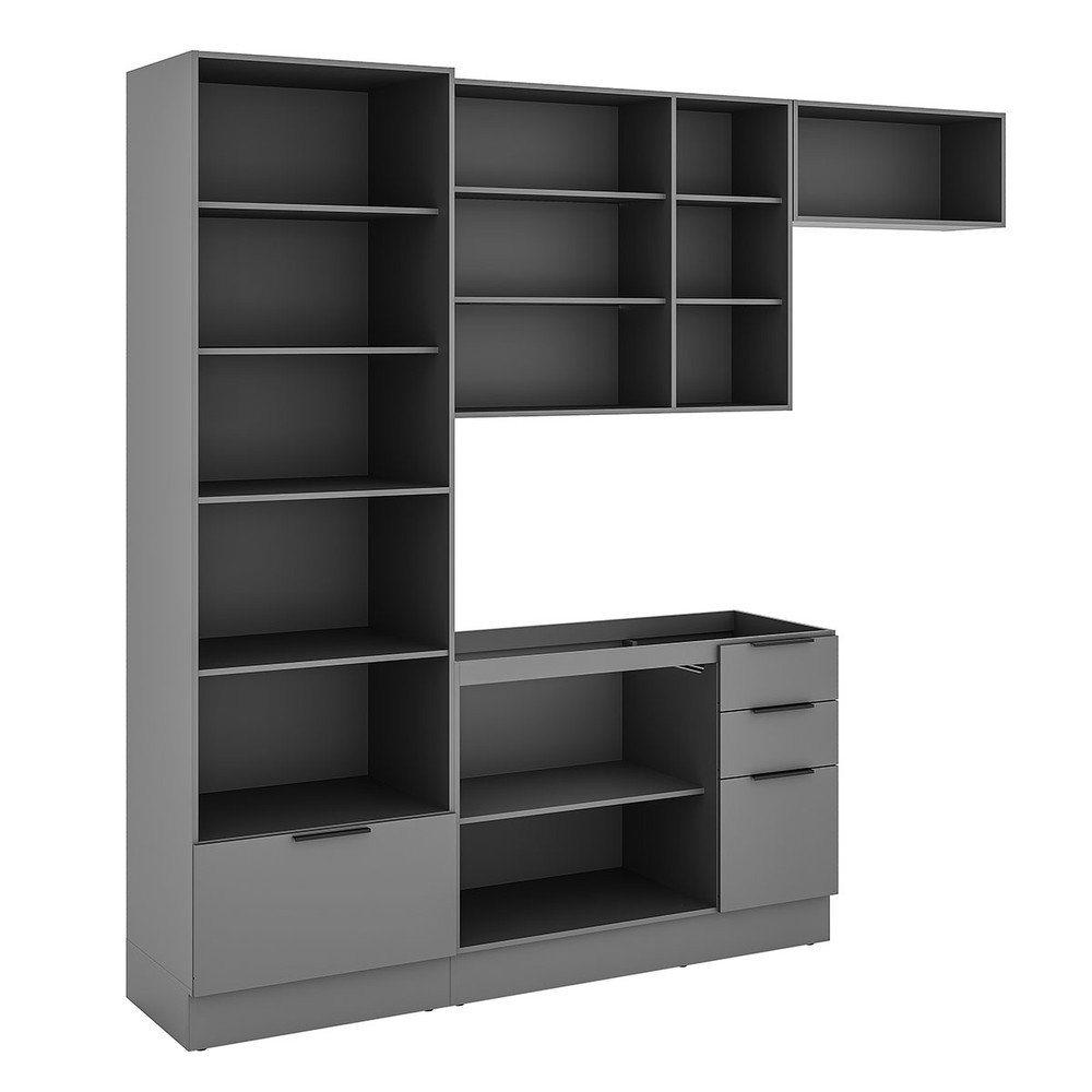 O(a) Cozinha Completa Lumina 8 Portas 4 Gavetas com Vidro Cinza - Telasul é produzido em MDP na escala de brilho Semi-Brilho, e possui um grau de dificuldade de montagem: Médio.
