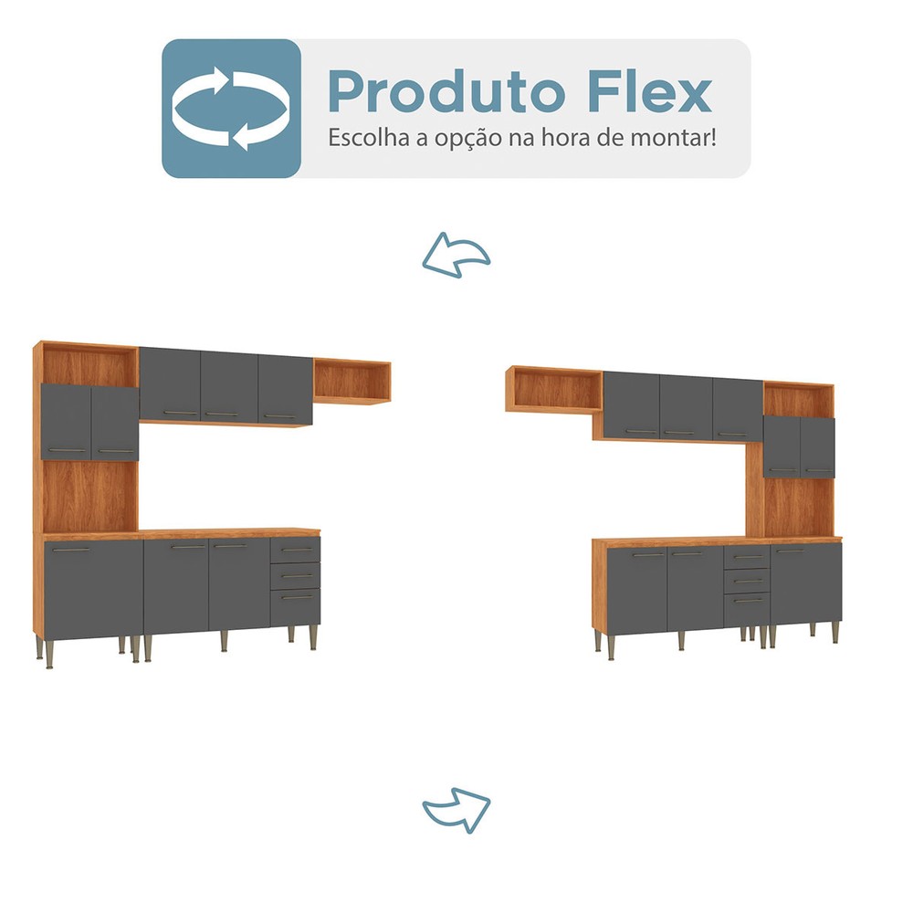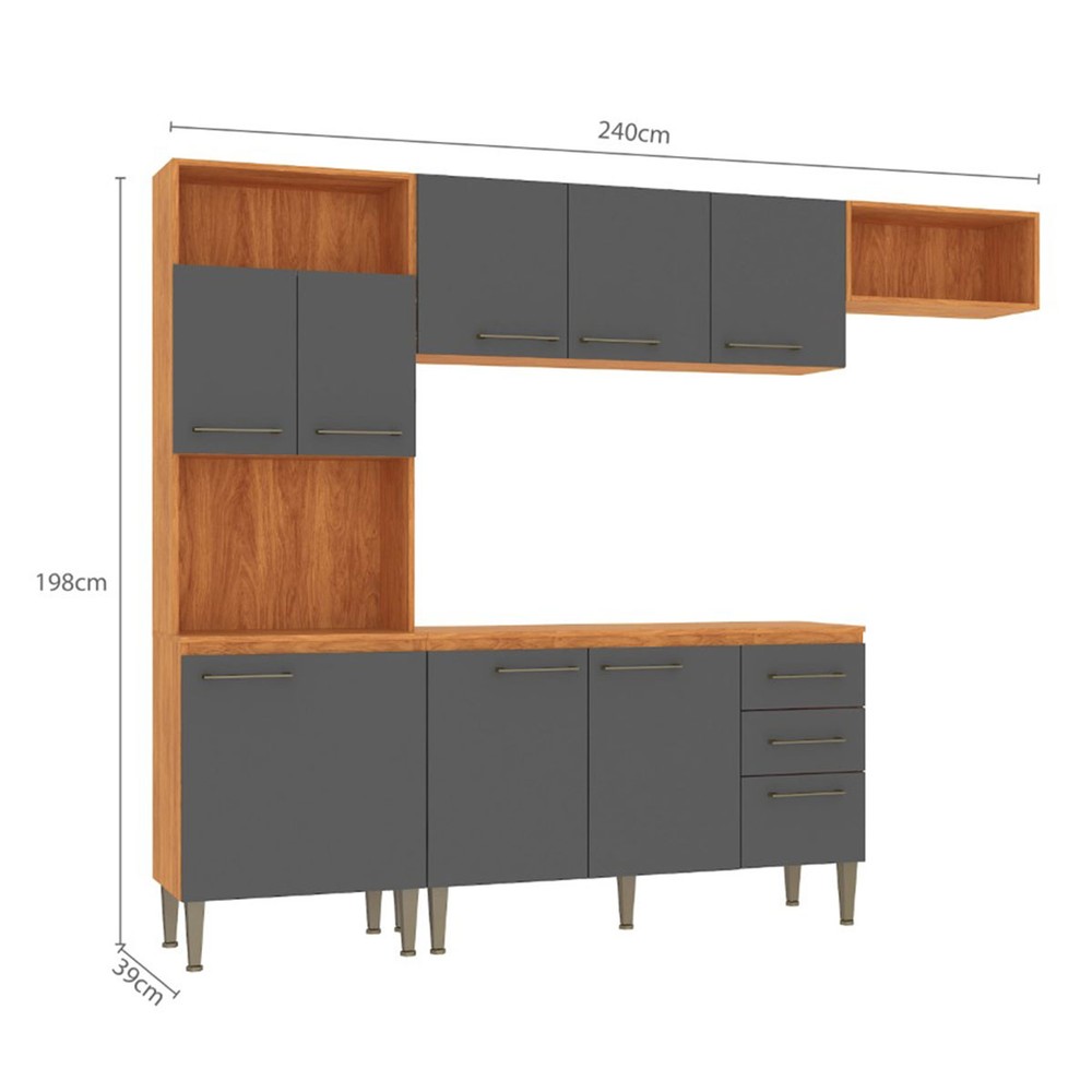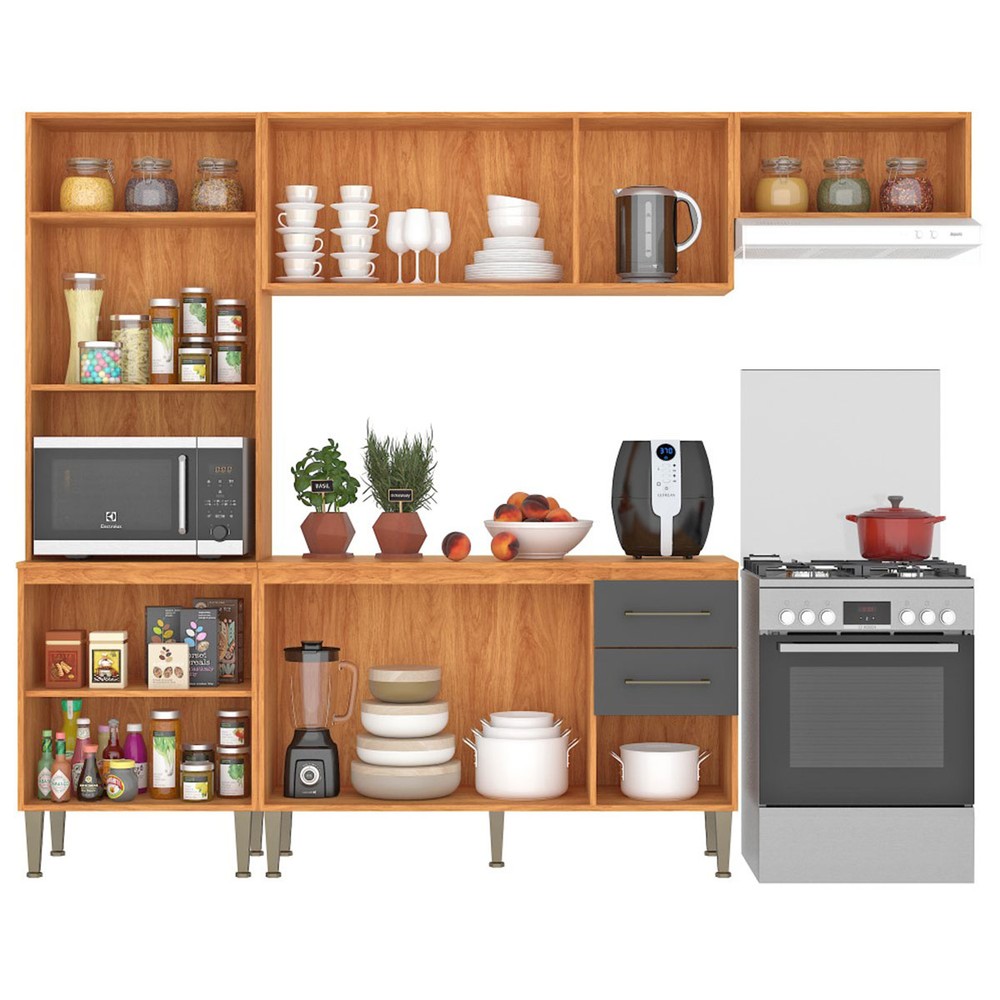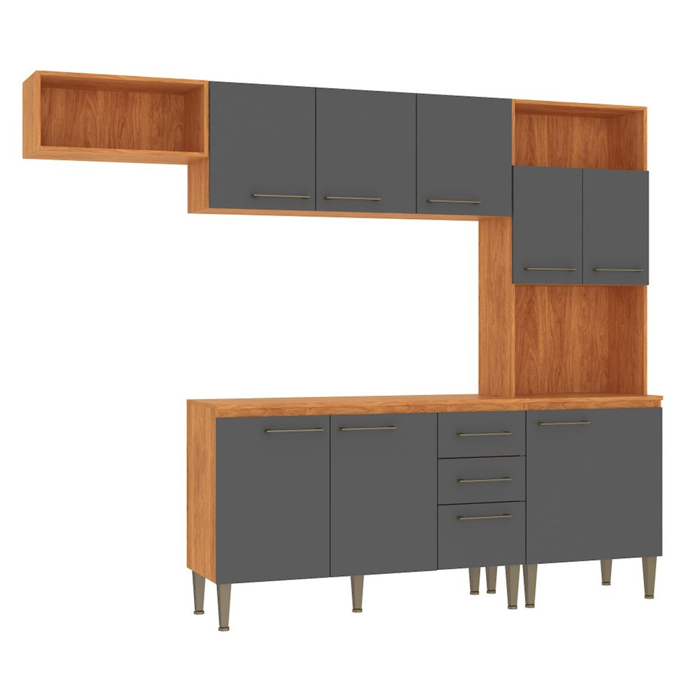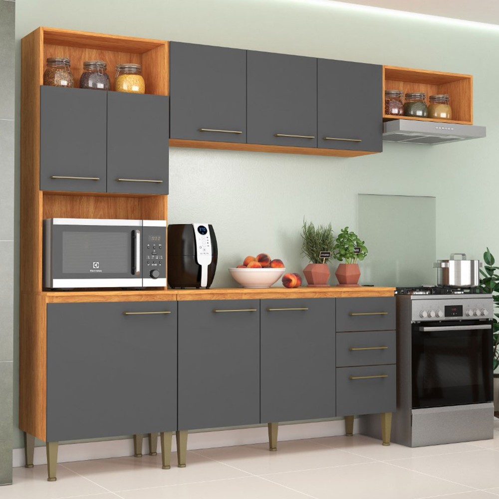 Cozinha Completa Malu 9 Portas 2 Gavetas Cinamomo/Grafite - Fellicci