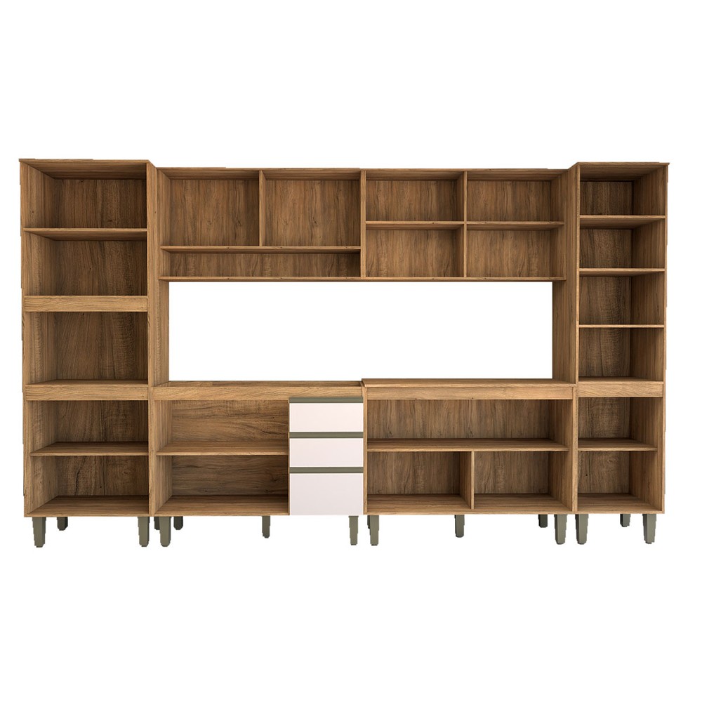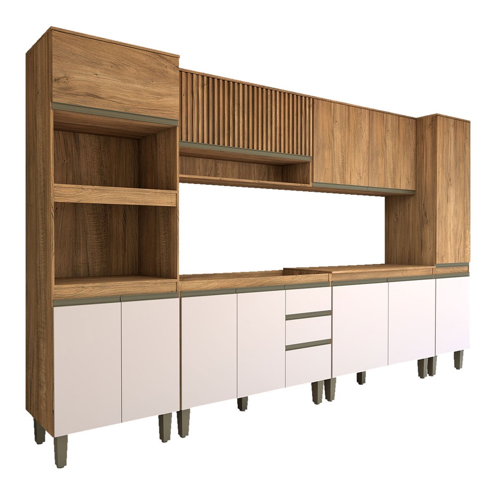 Cozinha Completa Modulada 12 Portas 3 Gavetas Ripado Freijó/Off White - Panorama Móveis