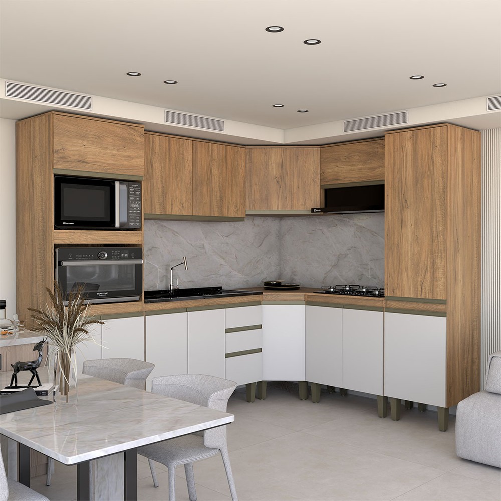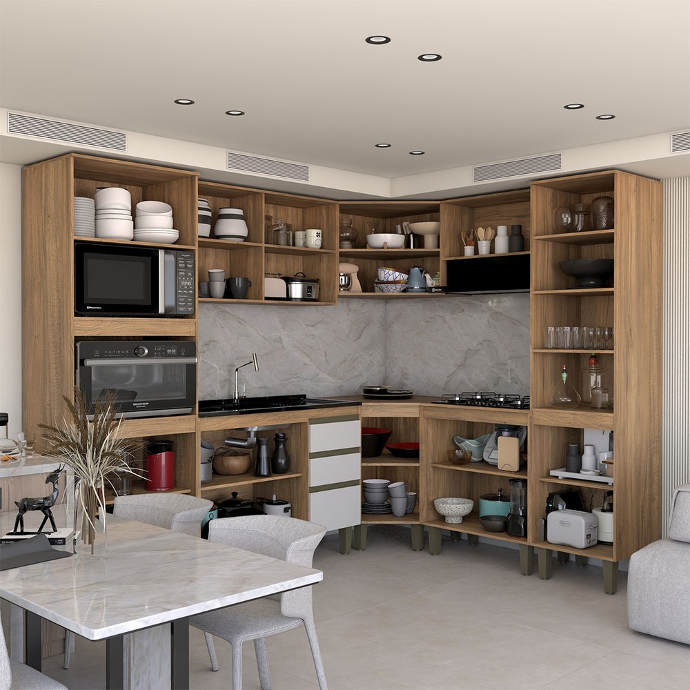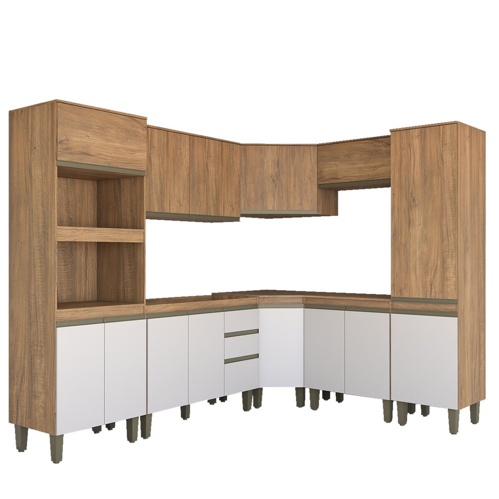 O(a) Cozinha Completa Modulada 14 Portas Gavetas Freijó/Off White - Panorama Móveis é produzido em MDP na escala de brilho Fosco, e possui um grau de dificuldade de montagem: Médio.