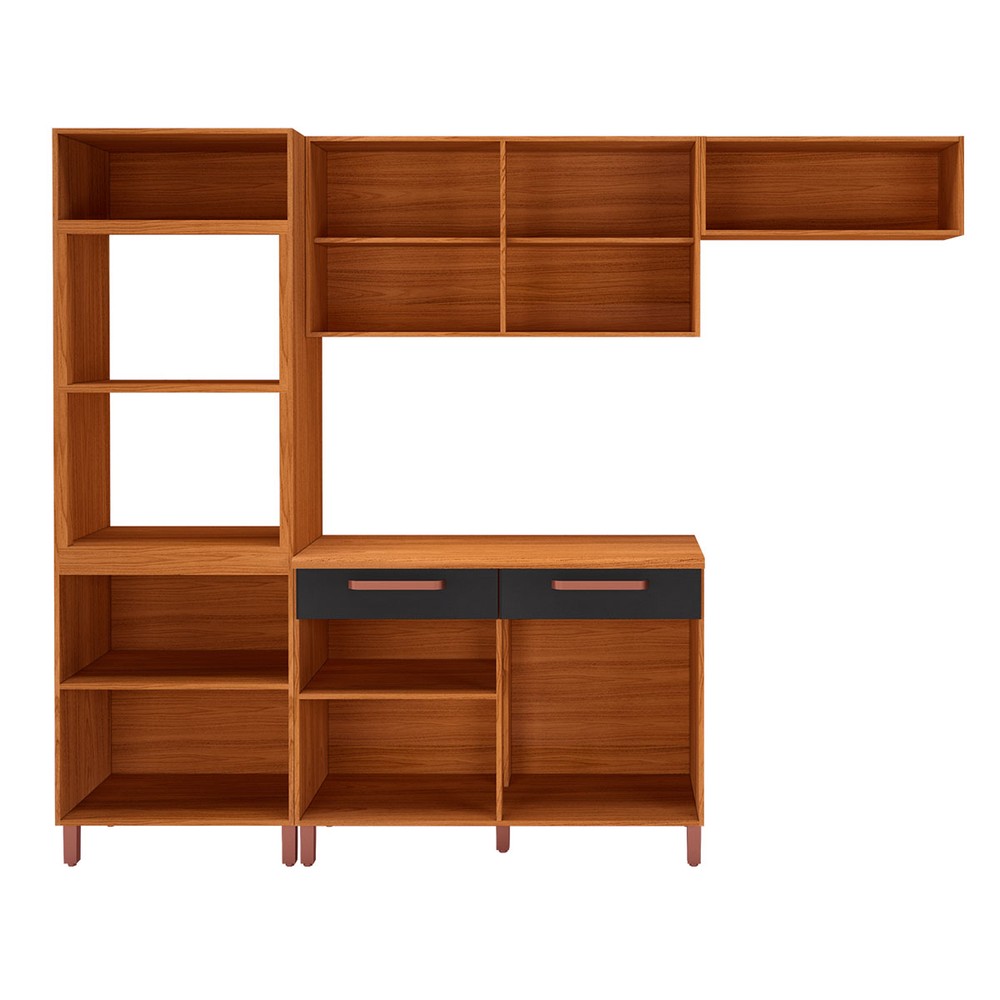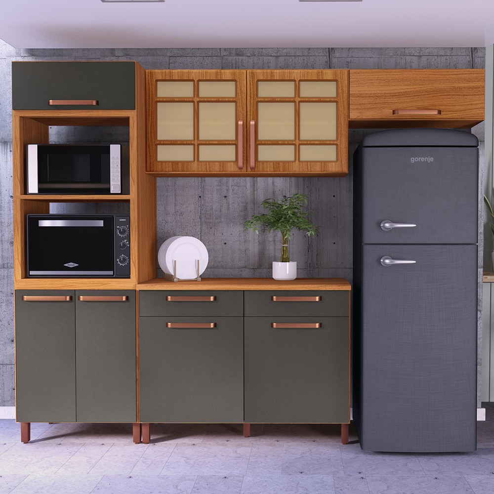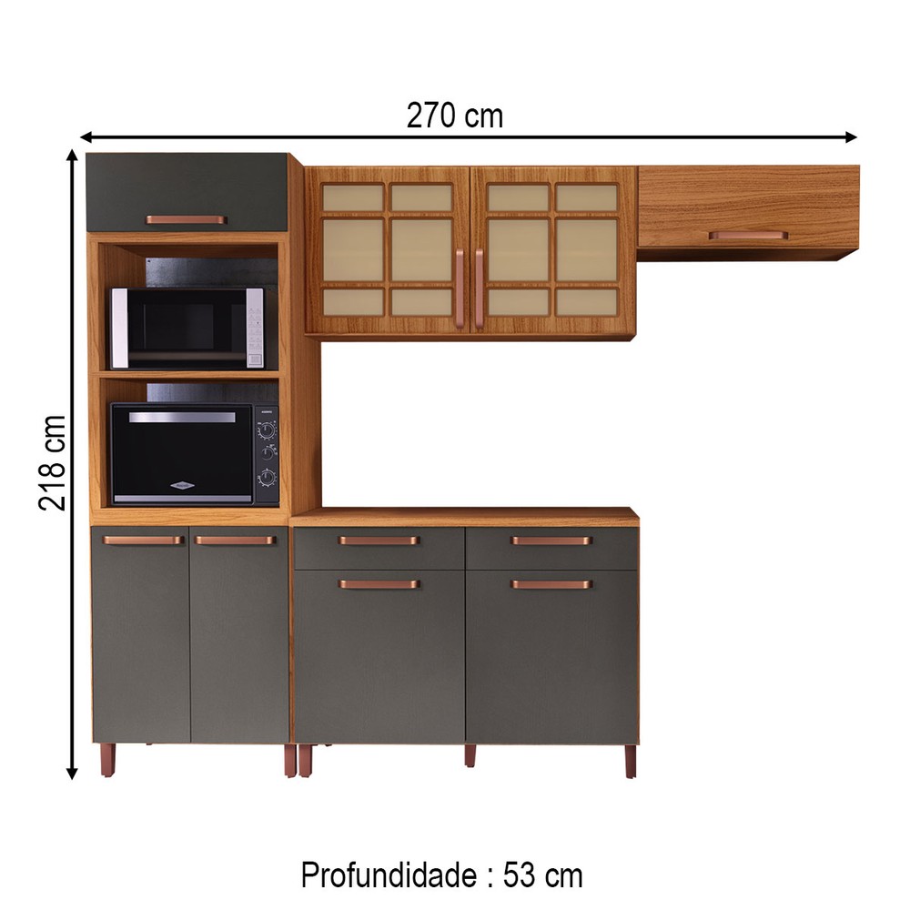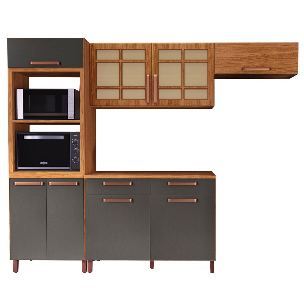 Cozinha Completa Monza 8 Portas 2 Gavetas com Vidro 6172.164 Freijó/Chumbo - Indékes