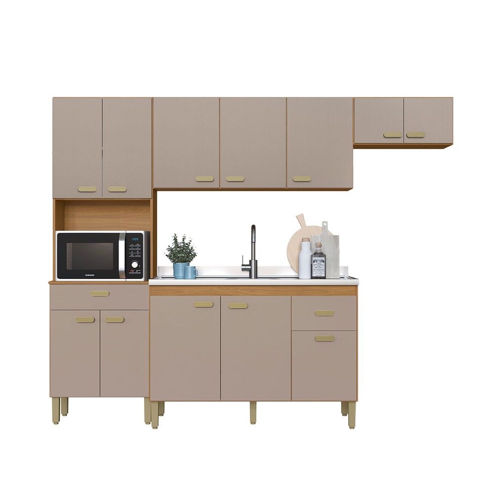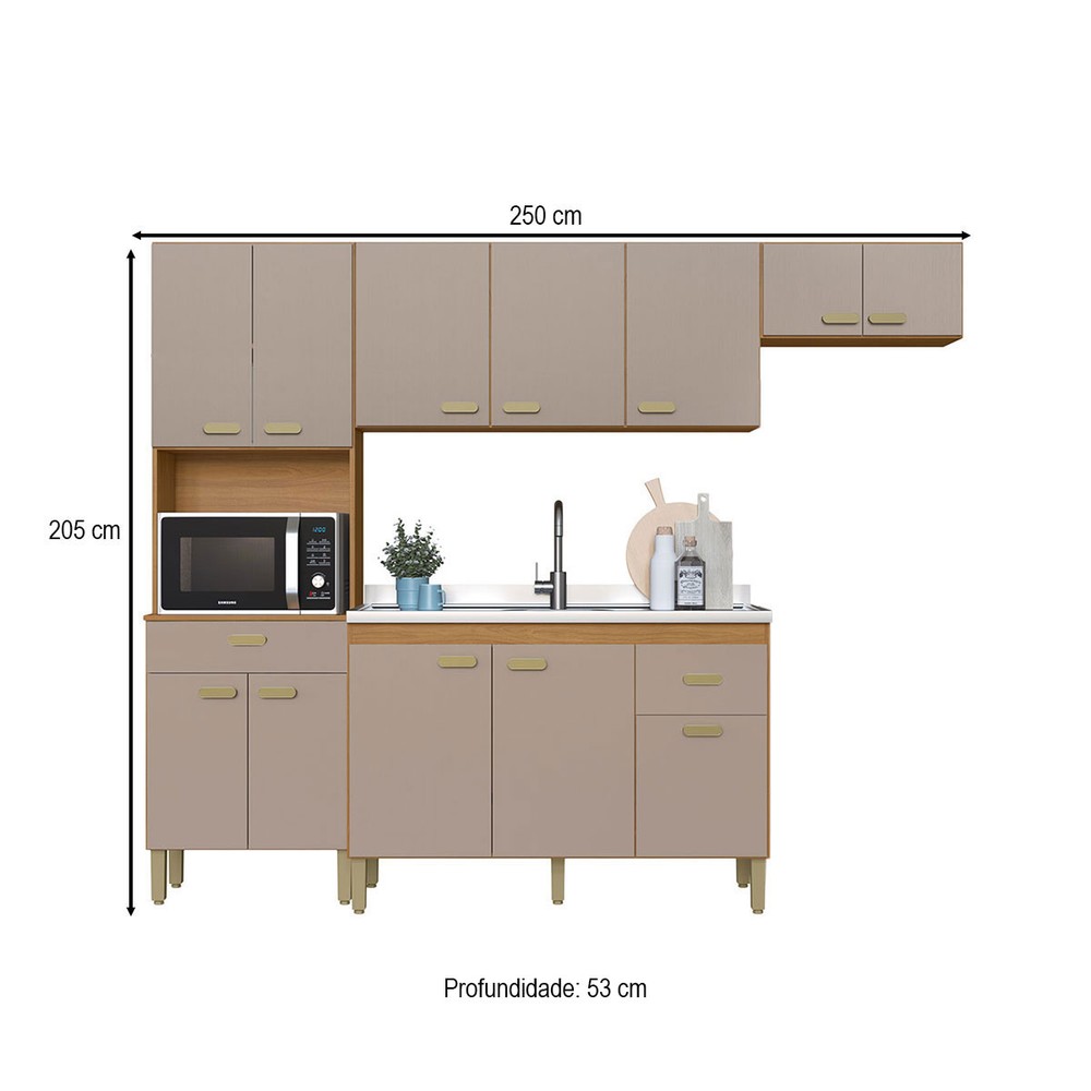 Cozinha Completa Zurique 12 Portas 2 Gavetas Freijo/Camurça - Indekes