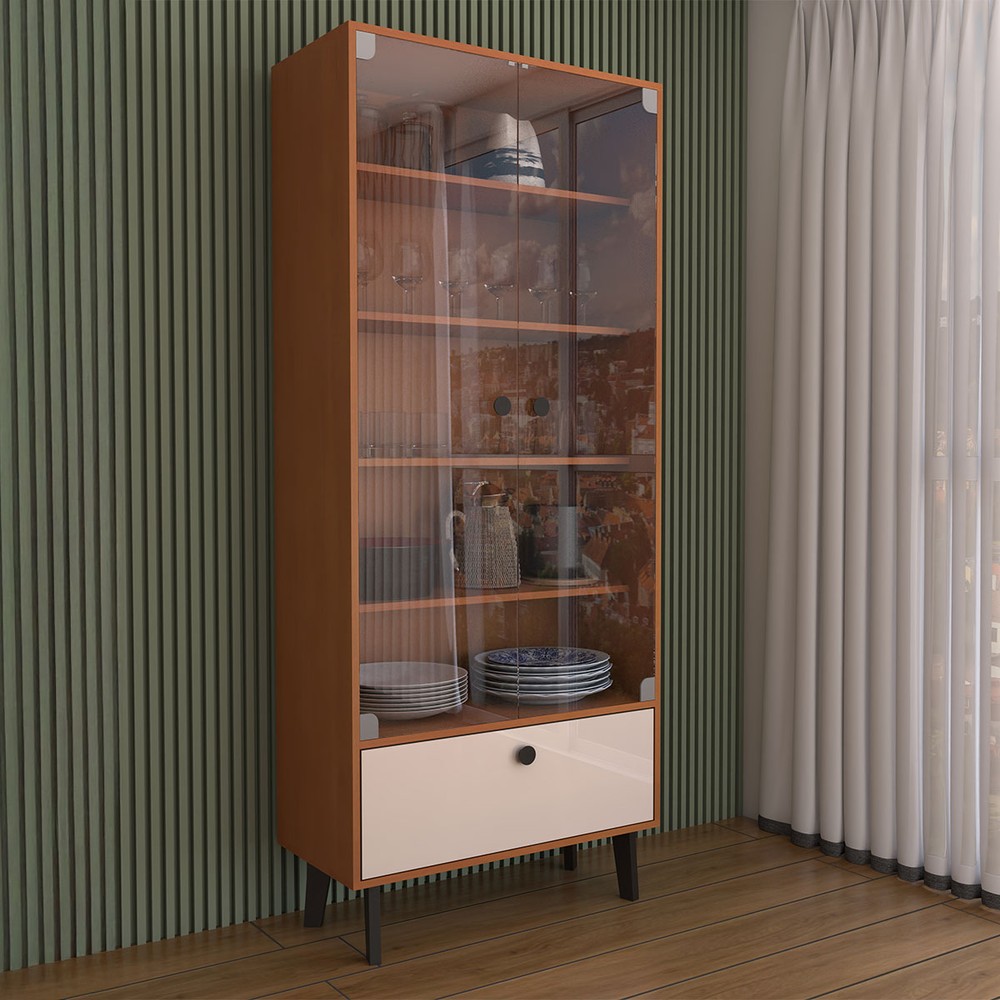 O(a) Cristaleira Bellagio 2 Portas 1 Gaveta com Vidro Creme/Freijó - Panorama Móveis é produzido em MDP na escala de brilho Semi-Brilho, e possui um grau de dificuldade de montagem: Médio.