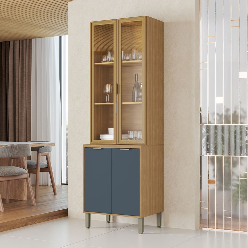 O(a) Cristaleira Colors 4 Portas 100% Mdf com Vidro Freijó/Azul Secreto - Kits Paraná é produzido em MDF na escala de brilho Brilho, Fosca com Textura e Fosco, e possui um grau de dificuldade de montagem: Médio.